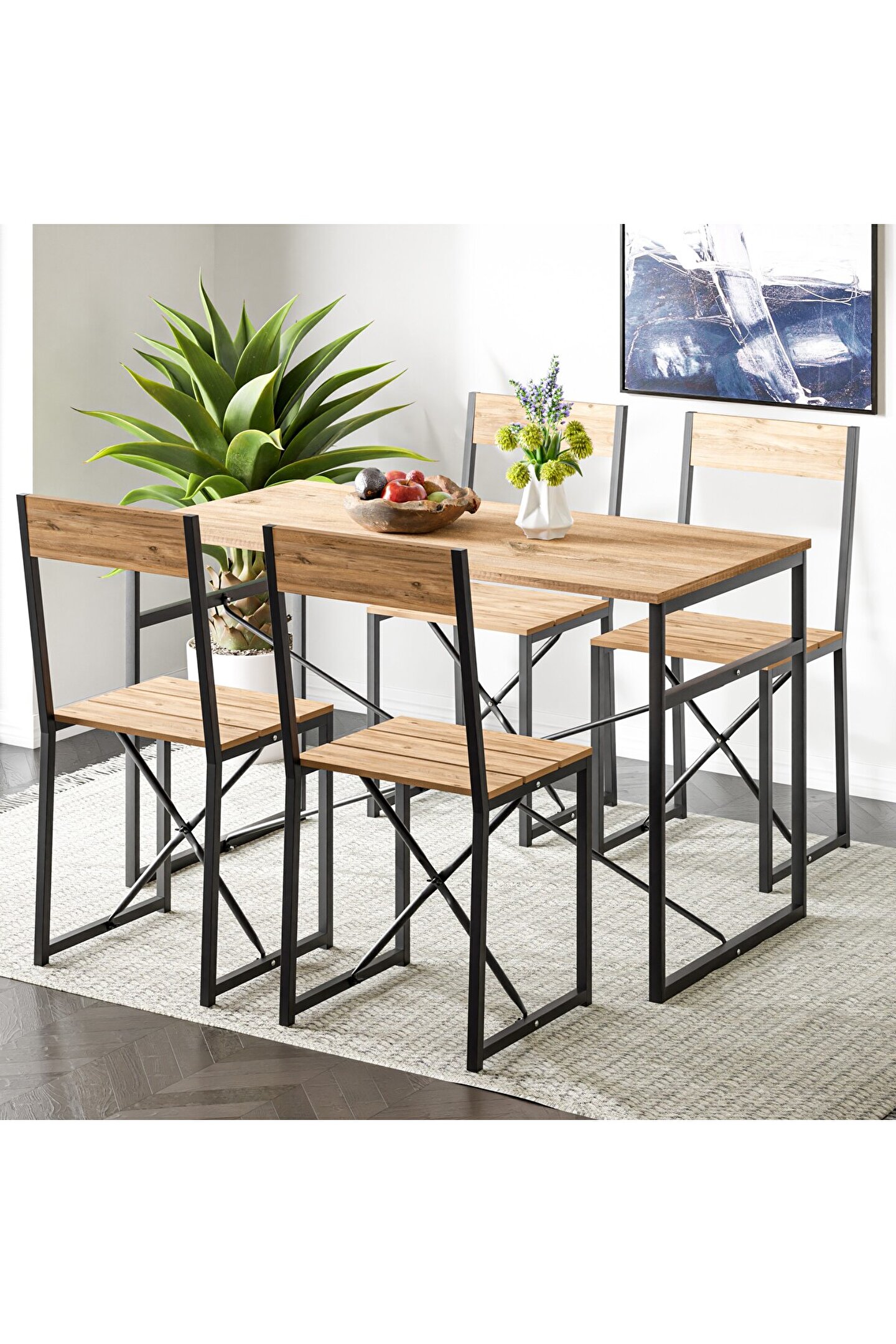 Yemek odaları ve mutfaklar için çok uygun bir ürün olan Atlantik Mutfak Masası Yemek Masası Takımı, modern tasarımı ve eşsiz duruşu ile göz doldurur. Sağlam ve kullanışlı olan mutfak masası, uzun seneler boyunca size eşlik eder. Dekorasyonunuzu en iyi şekilde tamamlamak ve harika bir iç mekan görünümü elde etmek için bu mutfak masasını değerlendirebilirsiniz. Atlantik Mutfak Masası Yemek Masası Takımı Nedir? Yemek mutfak masası takımı, dört kişilik olarak şekilde üretilmiştir. Ürün bir adet masa ve dört adet sandalyeden meydana gelir. Kaliteli malzemeler kullanılarak dizayn edilen masa, harika bir görünümü teşvik eder. Dört kişilik aileler için uygun olan yemek masa takımı, kullanışlılığı ve konforlu oluşuyla bir adım öne çıkar. Eğlence ve aile yemekleri için iyi bir seçim olan masa takımı, ailenizle ve arkadaşlarınızla keyifli zamanlar geçirmenize olanak tanır. Yemek saatinde aileyi ve arkadaşları bir araya toplayan masa, yemek mekanına anlam ve ruh katar. Ürün, hem boyutu hem de tasarımı bakımından tüm iç mekanlarda uyumludur. Özellikle de yemek odaları ve mutfaklar için uygun olan ürün, isteğe göre iş yerlerinde de gönül rahatlığı ile kullanılabilir. İstek ve ihtiyaçları karşılayan Atlantik yemek masası, iç mekânda şık bir görüntüyü mümkün hale getirir. Atlantik Mutfak Masası Yemek Masası Takımı Özellikleri Nelerdir? Mutfak yemek masası, kendine has özellikleri ile dikkat çeker. Ürünün öne çıkan özellikleri şöyledir: Set, dört sandalye ve bir adet masadan meydana gelir.; Ürün, hem salon hem de mutfak gibi alanlarda kullanılabilir, iç mekâna renk getirir. ; Ürün demonte şekilde gönderilir, kurulumu son derece kolaydır.; Masanın tabla ebadı: 60 cm x 120 cm şeklindedir.; Masanın yüksekliği 70 cm’dir.; Sandalyenin oturma alanı yüksekliği 47 cm; Sandalyenin sırt yüksekliği 85 cm; Sandalyenin oturma genişliği 40 cm; Atlantik Mutfak Masası Yemek Masası Takımı Avantajları Nelerdir? Atlantik mutfak masası takımı, bir kişinin yemek sırasında rahat bir şekilde hareket edebilmesini sağlamaktadır. Ürün, konfor seviyesini yükseltecek ve yemek sırasında rahat etmenizi sağlayacak şekilde dizayn edilmiştir. Büyük ya da küçük fark etmeksizin bütün odalarda kullanılabilir. Salonlar, yemek odaları ve mutfaklar için ideal bir masa sandalye takımı olarak dikkat çeker. Servis tabaklarını yerleştirmek, masayı yemek unsurları ile donatmak istediğinizde Atlantis yemek masası takımı tam da ihtiyaçlarınıza hitap eder. Masası oldukça geniş olan takım, sandalyeleriyle de konfor seviyenizi bir üst noktaya ulaştırır. Ürün, dört kişinin rahatlıkla yeme içmesini sağlayacak biçimde tasarlanmıştır. Kullanışlı ve konforlu sandalyeleri ile harika bir oturma deneyimini teşvik eder. Yaşam tarzınıza hitap eden tasarımıyla da fark yaratan masa sandalye takımı, evinizin dekorasyonunu zenginleştirir. Modern tasarım çizgisinde üretilen masa, tasarım açısından da ihtiyaçlarını karşılar. Açık konseptli bir mutfak alanına iyi bir şekilde uyum sağlayan ürün, diğer yandan yemek odaları ve salonlar için de uygun bir seçim olarak karşınıza çıkar. Çok yönlü olduğu için her türlü odada rahat bir şekilde kullanılabilir. İstediğiniz göre ürünü iş yerinizdeki yemek alanında da tercih edebilirsiniz. Her odanın bir odak noktası olması, dekorasyonu tamamlamanın en kolay yollarından biridir. Yemek masası takımı da işte bu noktada devreye girer ve odanızın odak noktası haline gelir. Hoş tasarımı ve kullanışlılığı nedeniyle masa sandalye takımı, evinizi güzelleştirmenizi, mutfağınızda ya da herhangi bir odanızda dekorasyonu teşvik etmenizi mümkün hale getirir. Masa ve sandalye takımına gereksinim duyuyorsanız; bu ürünümüzü değerlendirebilir ve ekonomik alışverişin tadını çıkarabilirsiniz.