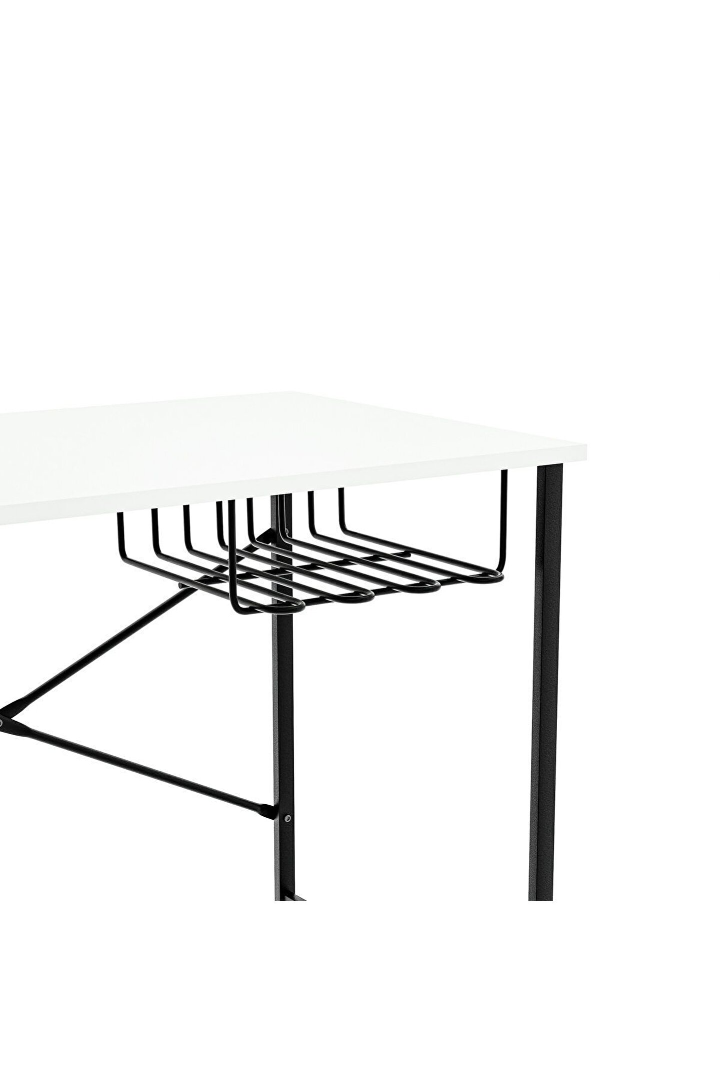 Dayanıklı metal malzeme kullanımı sayesinde uzun ömürlü ve sağlam bir yapı sunar; Beyaz renk seçeneğiyle modern ve şık bir görünüm sağlar, ofis veya çalışma odanızın dekorasyonuna kolayca uyum sağlar; Raflı tasarımı ile kitaplarınız, notlarınız ve diğer eşyalarınız için ekstra depolama alanı sunar, çalışma alanınızı düzenli tutar; Geniş yüzeyi sayesinde laptopunuz için rahat bir çalışma alanı oluştururken, aynı zamanda ekstra raflarla diğer ihtiyaçlarınıza da cevap verir;
