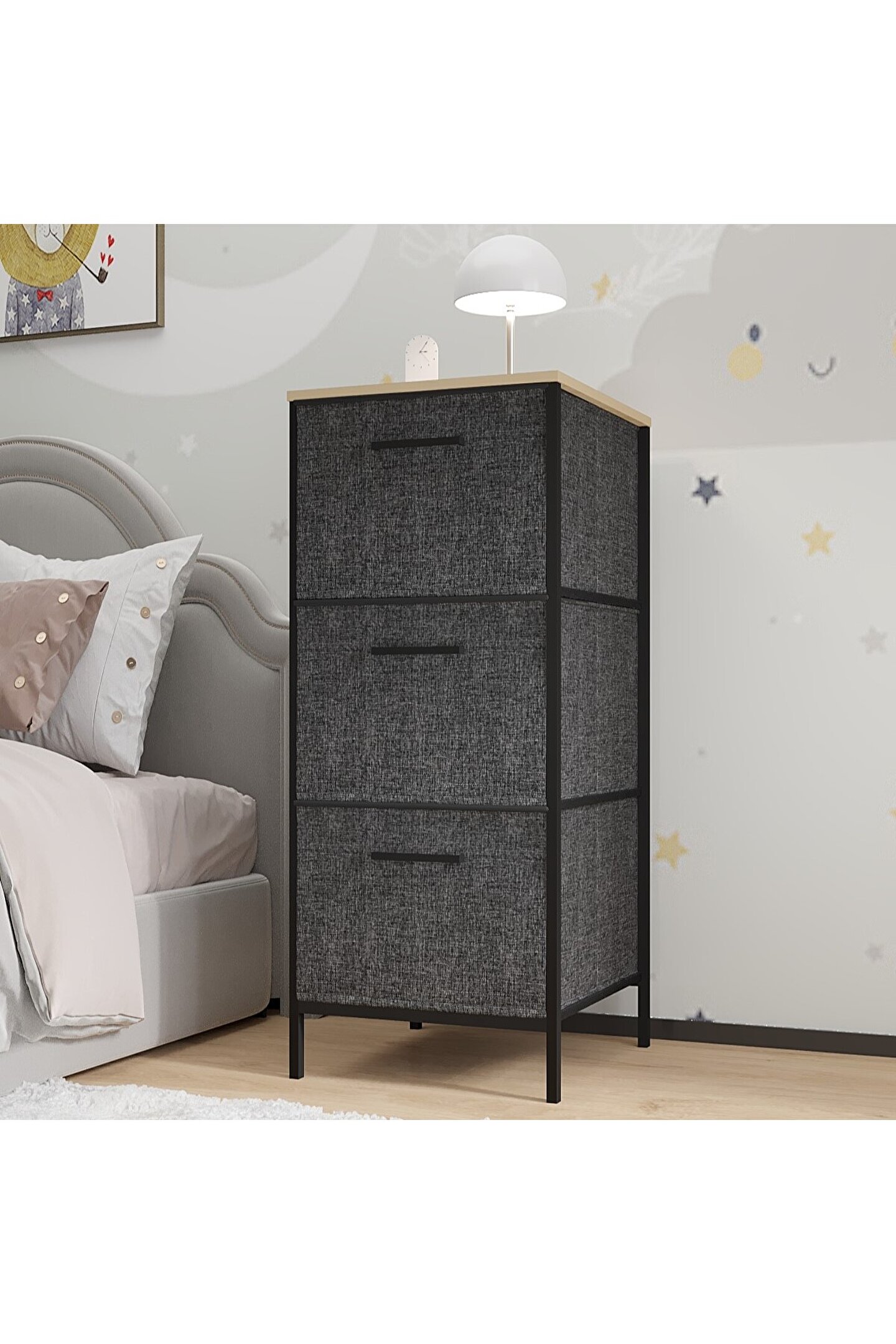 eportatif Çocuk Dolabı 3 Çekmeceli Büyük Boy Komodin Sehpa