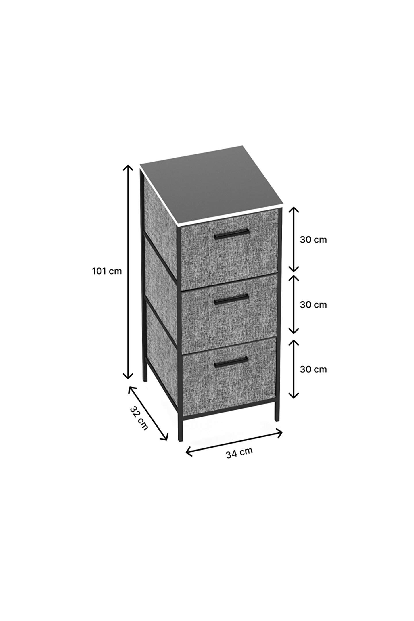 Çekmece arası mesafe : 30-30-30 cm