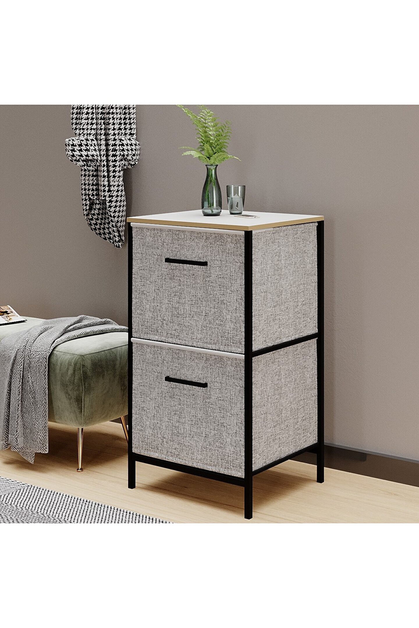 eportatif Çok Amaçlı Dolap 2 Çekmeceli Orta Boy Komodin Sehpa