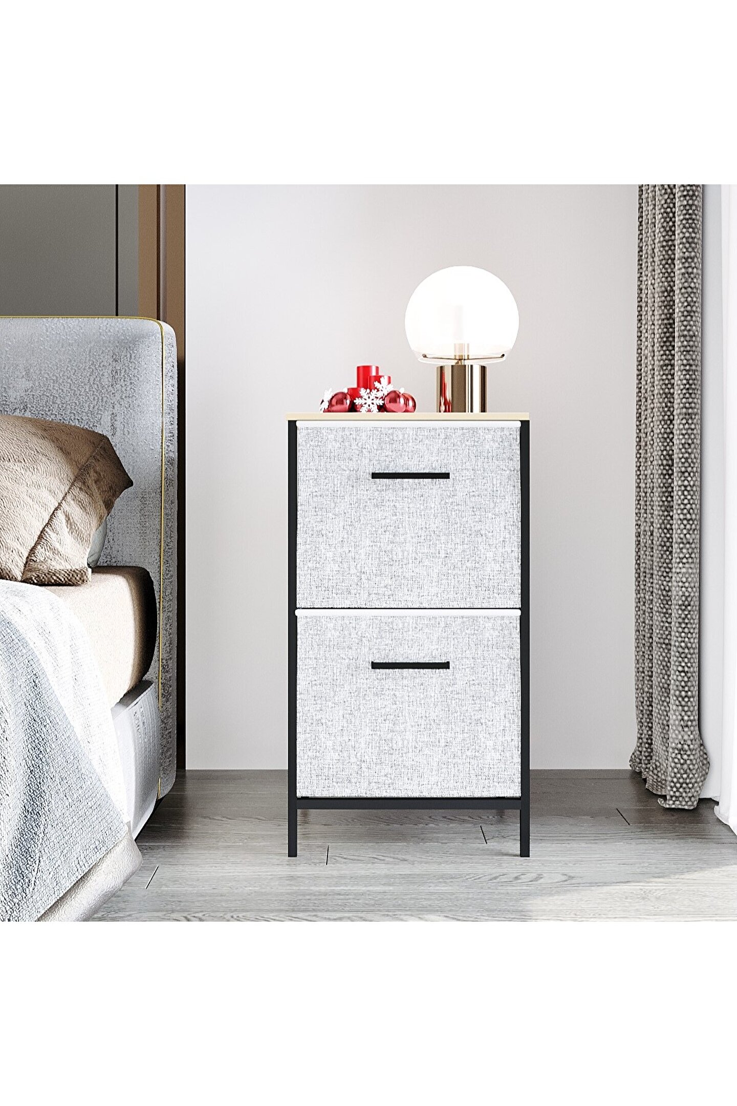 Bu komodinin iki çekmecesi ve çeşitli eşyalar, oyuncaklar, günlük ihtiyaçlar ve daha fazlası için geniş bir depolama kapasitesi vardır. Masa yüzeyine lambalar, bardaklar, çalar saatler, vazolar ve diğer dekoratif eşyalar yerleştirilebilir.