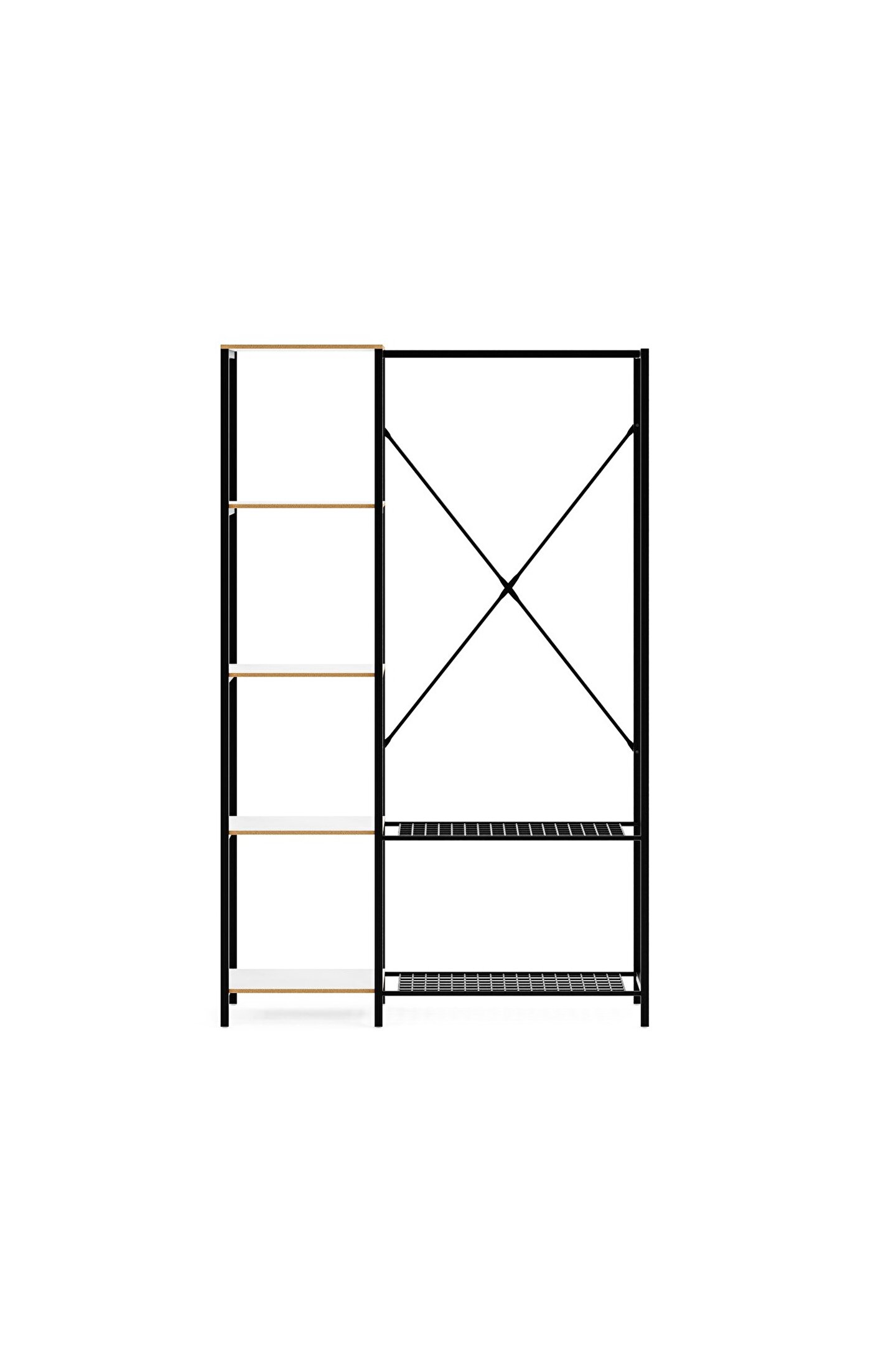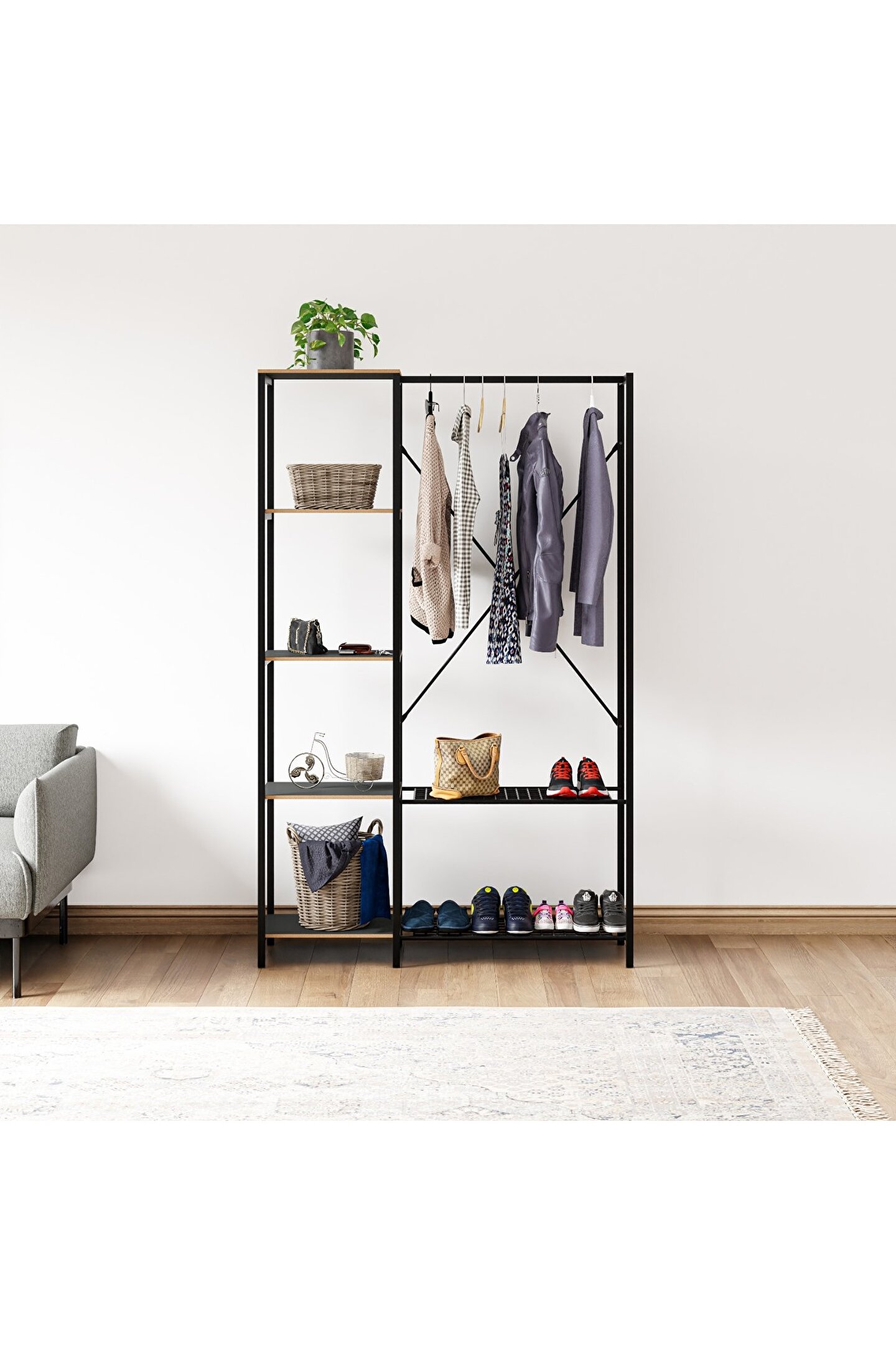 eportatif Çok Amaçlı Metal Ayaklı Raflı Dolap Ayakkabılık Portatif Portmanto Gardırop Füme 1372