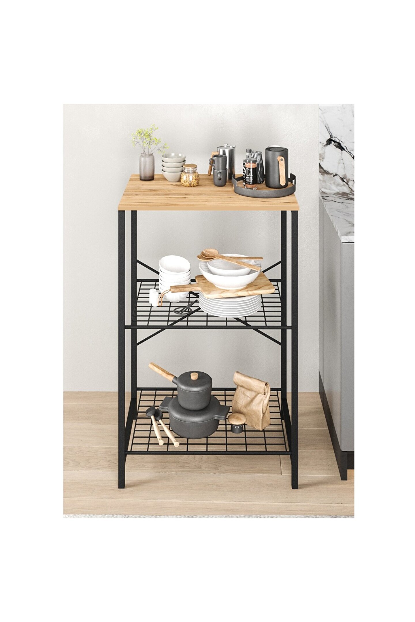 eportatif Çok Amaçlı Mutfak Rafı Bangosu Masa Dar Çam 1442
