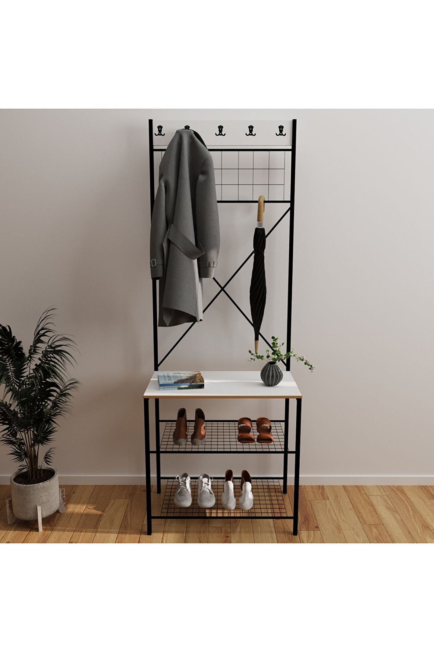 Modern tasarımıyla evinizin dekorasyonuna şıklık katan dar metal portmanto, elbise askılığı ve vestiyer, ayakkabılık füme 1360, her türlü mekan için ideal bir aksesuardır; Füme rengiyle zarif bir görünüm sergileyen bu ürün, modern tema ve stil anlayışınıza uyum sağlayarak evinizin atmosferini zenginleştirir;