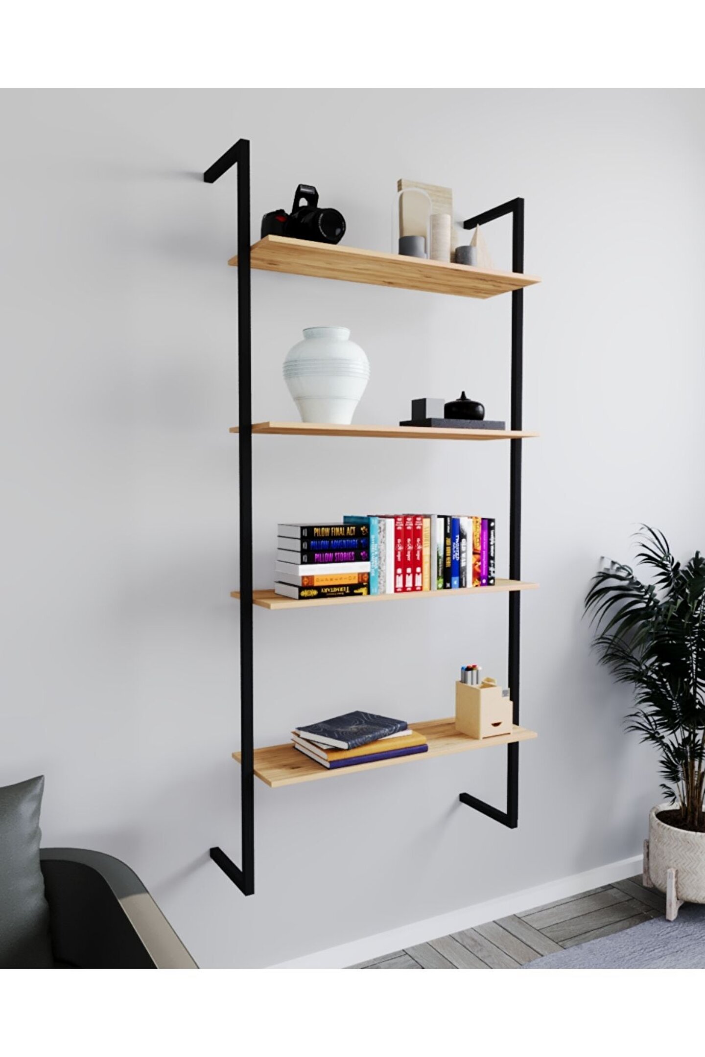 Duvar Rafı Metal Kitaplık Mobilya 4 Katlı, evlerin vazgeçilmez unsurlarından biri olarak kabul edilir. Şık ve sağlam duruşu ile fark yaratan kitaplık, pek çok farklı eşyayı ve kitabı, aynı anda muhafaza edebilir. Ürün hem kitapları sıralamak hem de farklı eşyaları saklamak için kullanılabilir. Çok yönlü bir seçimdir. Duvar Rafı Metal Kitaplık Mobilya 4 Katlı Nedir? Duvar Rafı Metal Kitaplık Mobilya 4 Katlı, başta evler olmak üzere her türlü alanda konumlandırılabilen bir kitaplık türüdür. Ürünü kitaplar, objeler ve çeşitli eşyalar için tercih edebilirsiniz. Duvar rafı olarak da lanse edilen ürün, her türlü eşyayı muhafaza etmenize olanak tanır. Duvar Rafı Metal Kitaplık Mobilya 4 Katlı, çocuk odalarında sıklıkla kullanılır. Çocuk odası duvar rafı olarak bilinen ürün, çocukların çok çeşitli eşyalarını, oyuncaklarını ve kitaplarını düzenli bir şekilde tutar. Kaliteli malzemelerden imal edildiği için çocukların sağlığını riske atmaz. Bu nedenle güvenli bir seçim olarak kabul edilir. Genç odası duvar rafı, genç odalarının dekorasyonunu etkin şekilde tamamlamayı başarır. Genç odalarına renk ve anlam katan Duvar Rafı Metal Kitaplık Mobilya 4 Katlı, diğer yandan eşyaların daha düzenli bir şekilde sergilenmesine ve muhafaza edilmesine izin verir. 4 katlı olduğu için çok sayıda eşyayı aynı anda muhafaza edebilir. Bu da ürünün en beğenilen özellikleri arasında konumlanır. Oturma odası raf seçeneği olarak da öne çıkan Duvar Rafı Metal Kitaplık Mobilya 4 Katlı, oturma odalarının dekorunu iyileştirir. Kitapları, dekorasyon objelerini ve pek çok eşyayı barındırabilen raf, iç mekanda daha düzgün bir görüntüyü teşvik eder. Duvar Rafı Metal Kitaplık Mobilya 4 Katlı Hangi Özellikleri Sunar? Duvar Rafı Metal Kitaplık Mobilya 4 Katlı, kendine has özellikleri ile bilinir. Ürünün öne çıkan özellikleri ile ilgili şunları söylemek mümkündür: Duvar rafı kitaplık 4 katlı bir üründür.; Ürün demonte şekilde gönderilir. Kurulumu kolaydır. Dört tane vida ile duvara sabitlenmektedir.; Rafın malzemeleri sunta lamdır.; İskelet malzemesi metal profildir.; Her raf en çok 7.5 kg ağırlığı kaldırmaktadır.; Ürünün genişliği 70 cm; Ürünün derinliği 22 cm; Ürünün yüksekliği 150 cm; Duvar Rafı Metal Kitaplık Mobilya 4 Katlı Avantajları Nelerdir? Duvar Rafı Metal Kitaplık Mobilya 4 Katlı, pek çok avantajı beraberinde getirerek, eşsiz bir kullanım deneyimini teşvik eder. Ürünün en beğenilen özelliği de her odaya kurulabiliyor olmasıdır. Bu nedenle ihtiyaç duyduğunuz her alan için Duvar Rafı Metal Kitaplık Mobilya 4 Katlı edinebilirsiniz. Salon duvar rafı arayanların gereksinimlerine maksimum oranda yanıt veren Duvar Rafı Metal Kitaplık Mobilya 4 Katlı, salonların daha şık ve benzersiz bir görünüm kazanmalarını sağlar. Fazla eşyaların muhafaza edilmesine yardımcı olan ürün, diğer yandan iç mekânın dağınık görünmesine engel olur. Her türlü salon dekorasyonu ile uyumlu bir görüntü oluşturmaktadır. Duvar Rafı Metal Kitaplık Mobilya 4 Katlı, banyo duvar rafı olarak da işlev görür. Dolayısıyla banyolarda yer alan havlu, bornoz, şampuan, kişisel bakım ve banyo malzemeleri, bu raf ile kolay ve pratik şekilde muhafaza edilebilmektedir. Duvar Rafı Metal Kitaplık Mobilya 4 Katlı, banyolardaki dağınıklığı kolayca ortadan kaldırmanın en iyi yolu olarak kabul edilir. Duvar Rafı Metal Kitaplık Mobilya 4 Katlı, çalışma odası kitaplık aradığınızda da en iyi seçeneğiniz olur. Geniş tasarımı ile çok sayıda kitabı aynı anda muhafaza eden ürün, harika ve ilgi çekici bir dekorasyon unsuru olarak kabul görür.