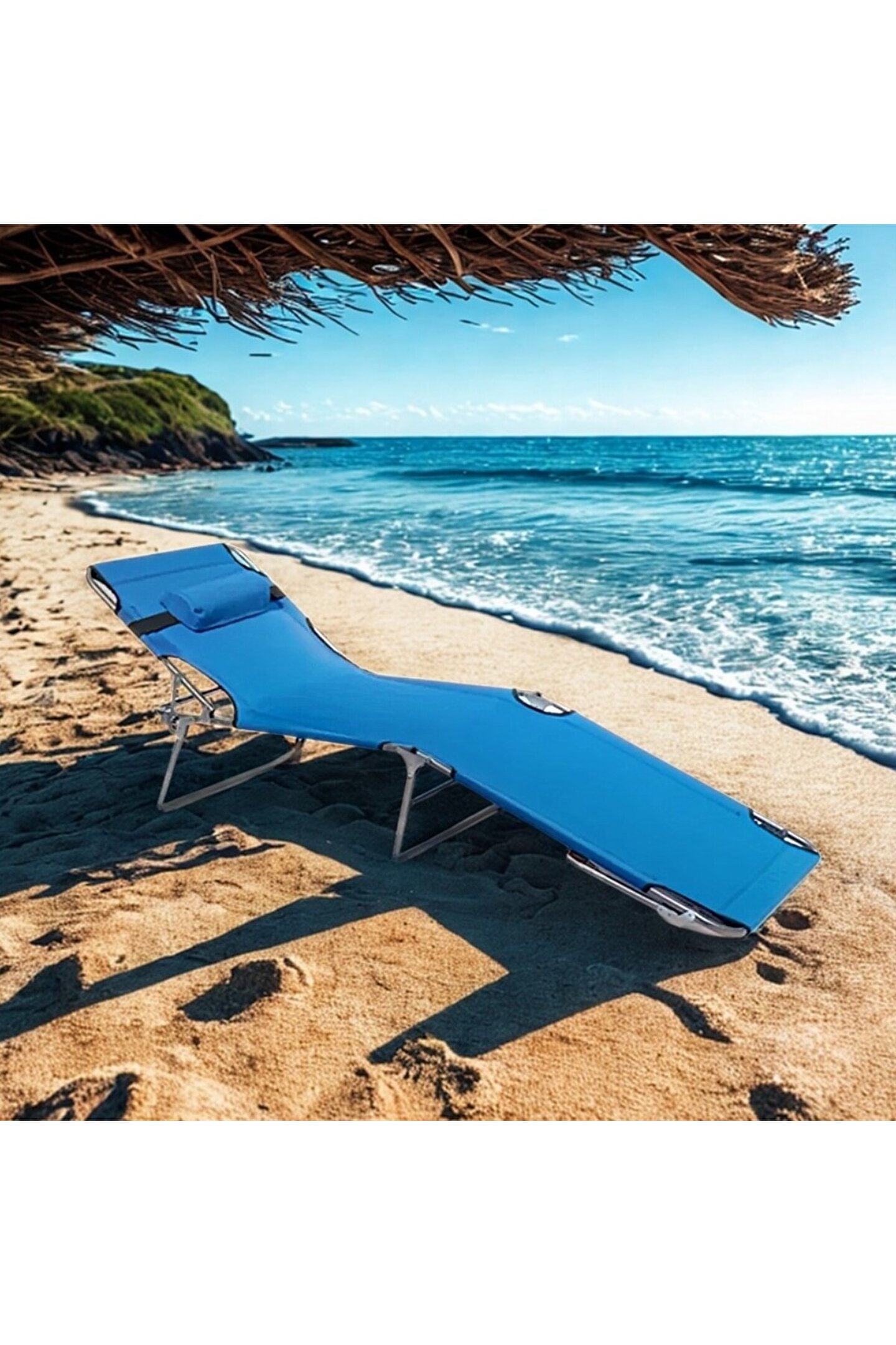 eportatif Kamp Yatağı Yastıklı Katlanır Şezlong Kampet Mavi 1626