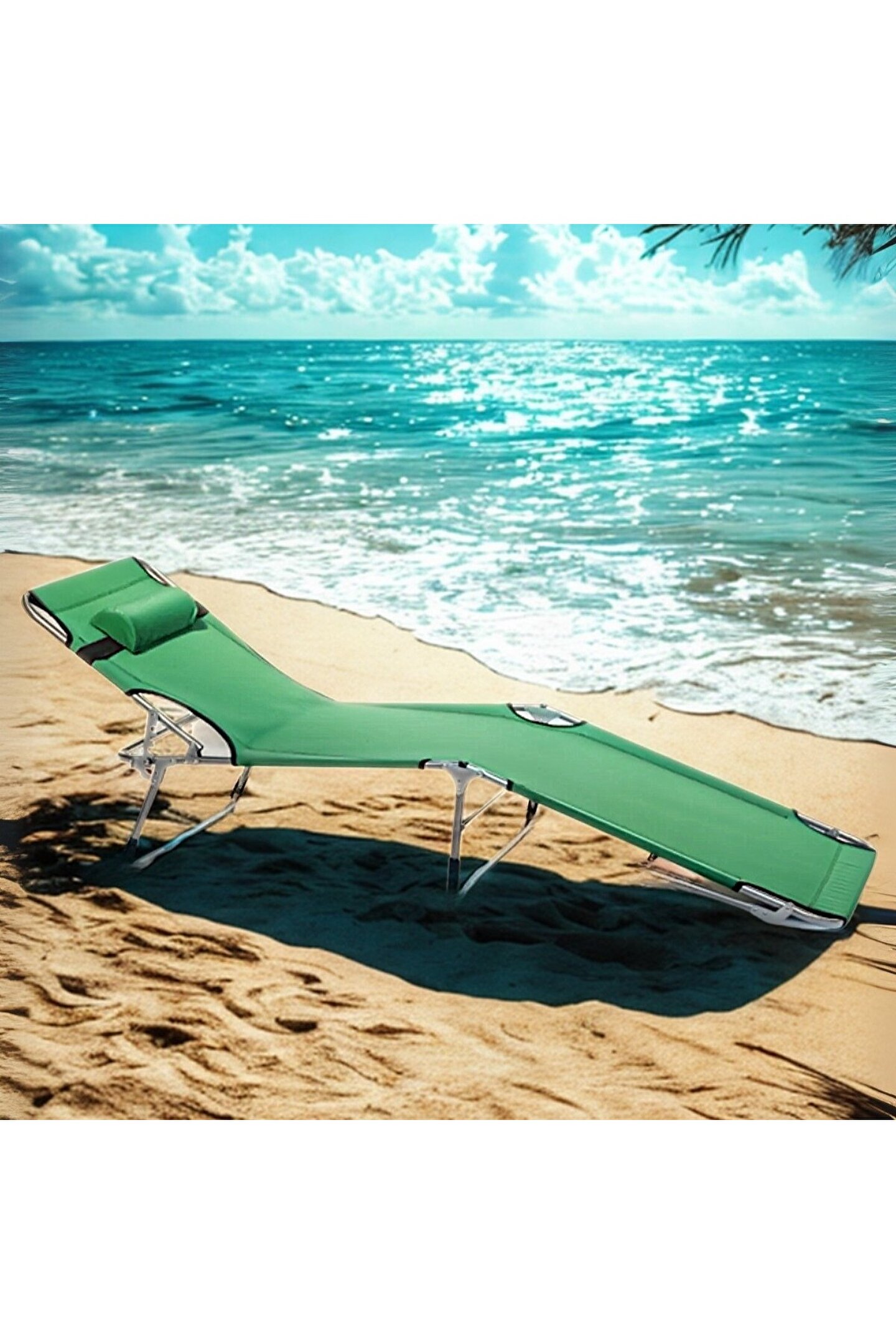 eportatif Kamp Yatağı Yastıklı Katlanır Şezlong Kampet Yeşil 1627