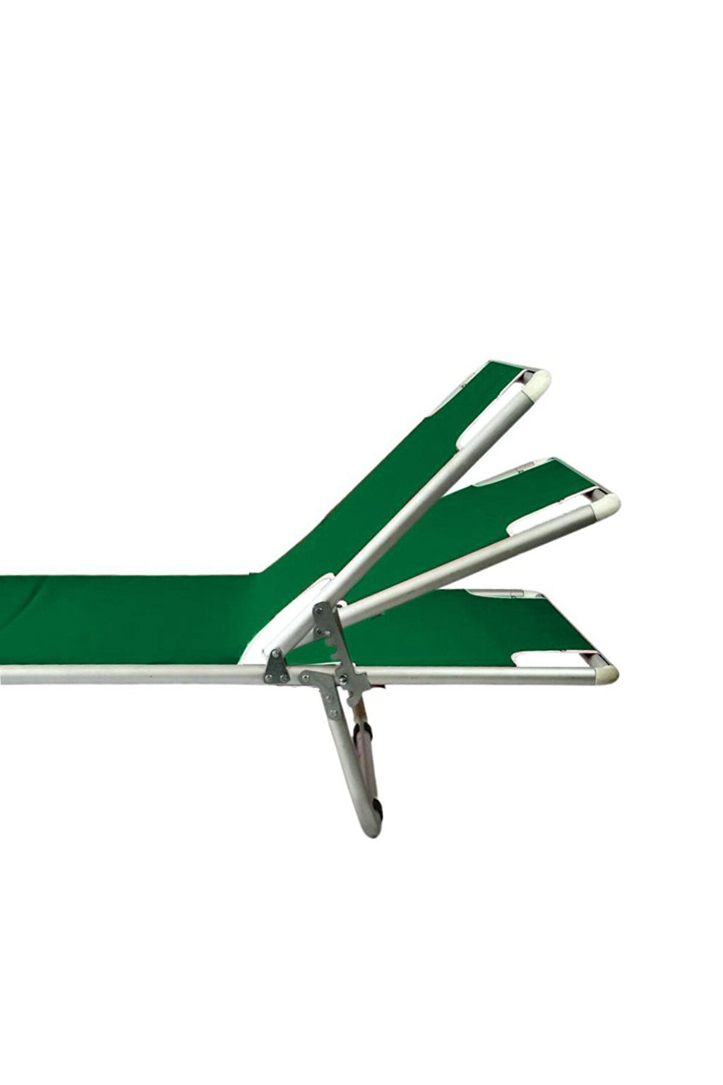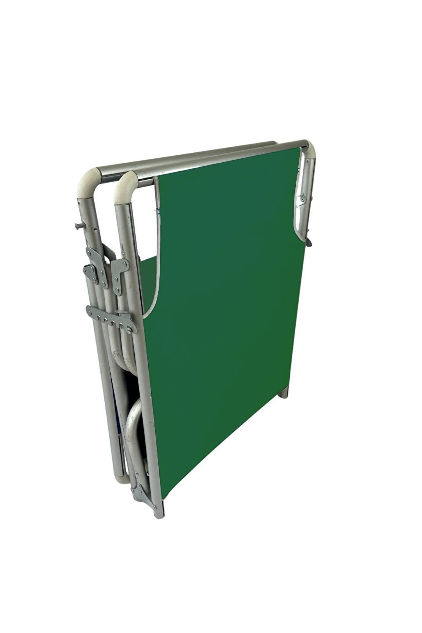 Modern tasarımı ile dikkat çeken katlanır alüminyum şezlong, kamp ve doğa aktivitelerinizde şıklığı ve konforu bir arada sunar; Hafif ve dayanıklı alüminyum materyali sayesinde taşıması kolaydır ve uzun süreli kullanımlarda bile formunu korur; Yeşil renk seçeneğiyle doğanın içinde uyum sağlayarak estetik bir görünüm kazandırır;