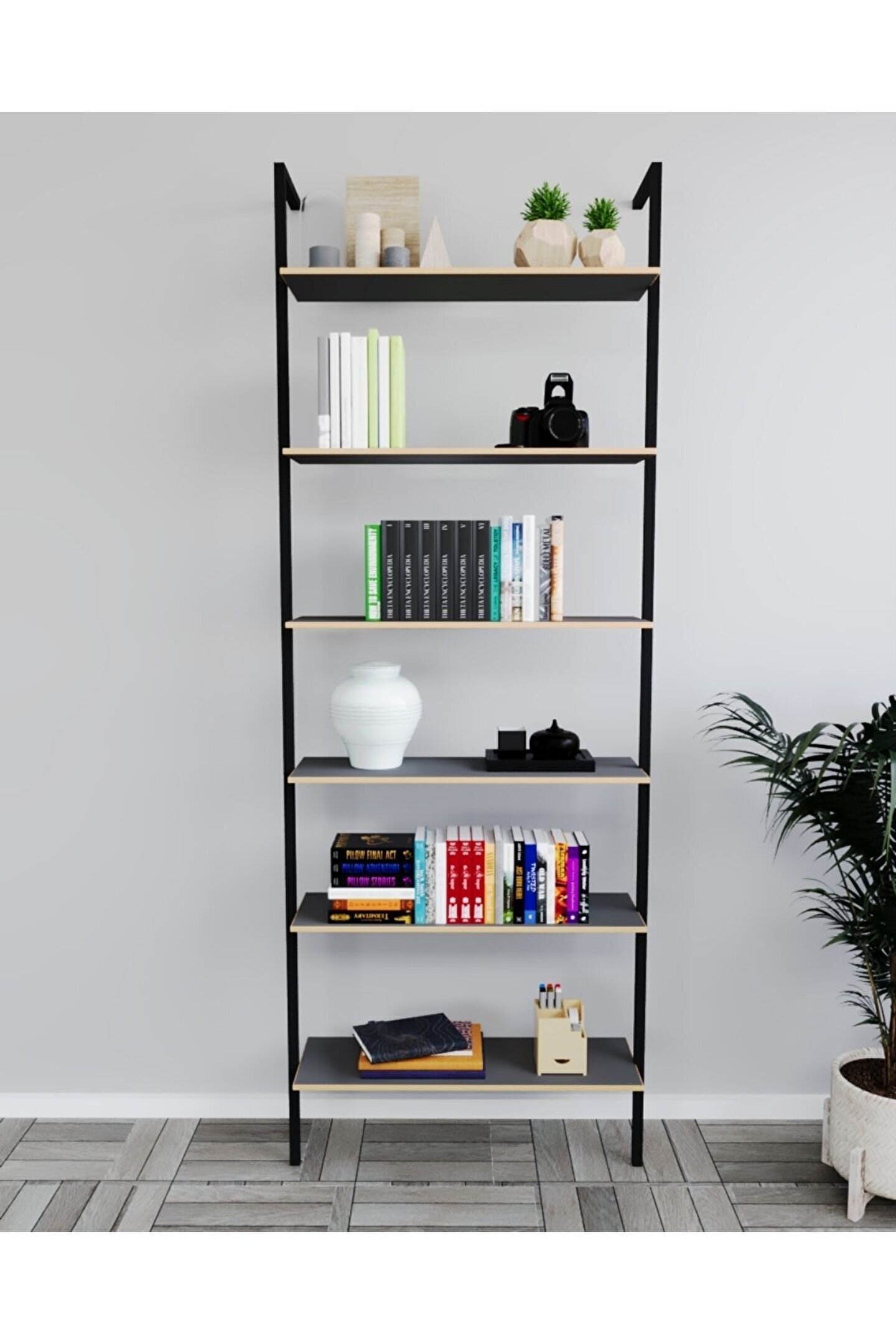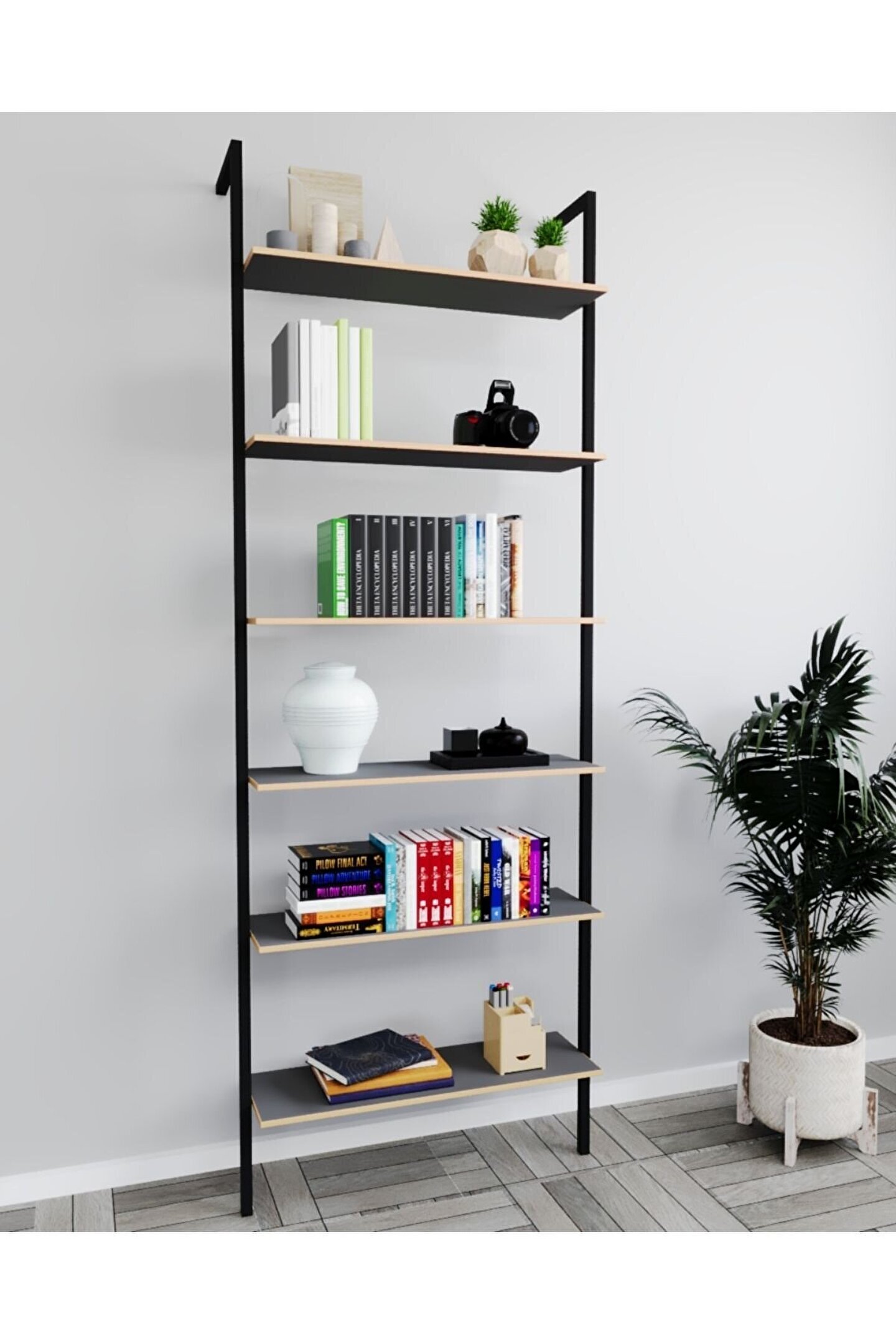 eportatif Kitaplık Duvar Rafı Metal Kitaplık Mobilya 6 Katlı Füme 1356