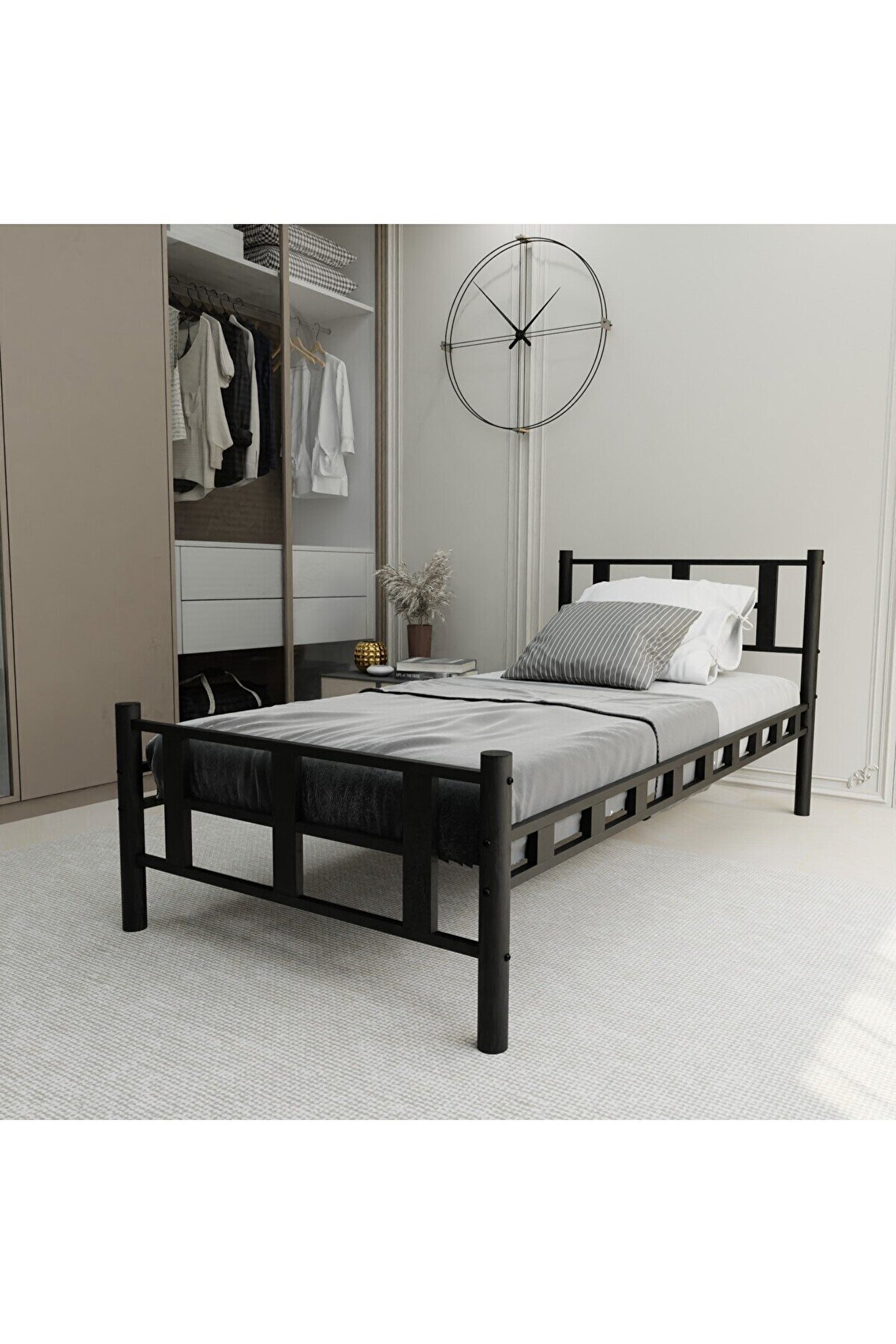 Kolay Kurulum: Detaylı kurulum kılavuzu ve ürün içerisinde gönderilen alyan anahtar sayesinde rahat kuruluma sahiptir. Ürün demonte halde gönderilmekte olup, sadece metal karyola olarak satılmaktadır. Yatak dahil değildir.