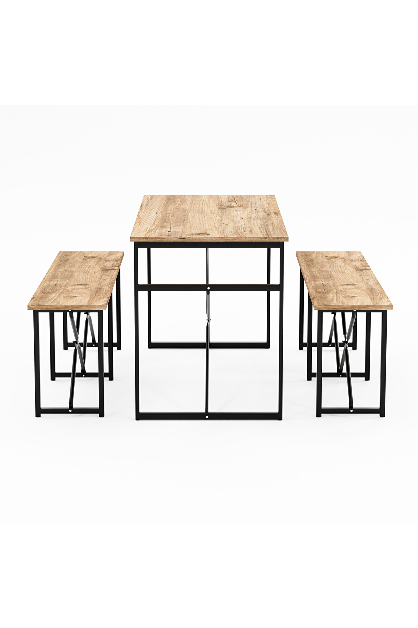 Masa takımı 120x60 cm ölçüleriyle çok kullanışlıdır. Modern tasarım çizgisinde imal edilen masa, son derece kullanışlı bir yapıdadır.; Mutfak masasında kullanılan malzemeler ahşap suntalamdır. Suntalam malzeme yapısı gereği son derece dayanıklı sağlamdır.; Bench veya bank olarak da kullanıma uygundur. Mutfaklarda, yemek odası, salon ve benzeri alanda da kullanılır.; Dikdörtgen formdadır. Dikdörtgen yapısı gereği her alana kolaylıkla sığar. ; Paket içeriğinde iki adet bench bulunur.; Bench sandalyenin ebatları genişlik 120 cm, derinlik 32 cm ve yükseklik ise 45 cm şeklindedir.; Mutfak masasının ayak kısımları demir elektrostatik boyalıdır. Masanın tabla kısmı suntalam malzemeden üretilmiştir.; Beyaz renkli masa hafif ama dayanıklı malzemelerden üretilir. Bu masa seti, hızlı kurulumu ve kolay saklanabilme özelliğiyle dikkat çeker.; 4 kişilik bench ölçüleri kalabalık aileler ve çoklu misafir grupları için uygundur.; Kaliteli malzeme kullanımı ile hava koşullarına dayanıklı olan portatif takım, uzun ömürlü bir deneyim sunar.; Mutfak masası temizlenmesi de son derece kolaydır. Yüzeyler kirlendiğinde nemli bir bezle hızlıca temizleme imkanına sahiptir.; Taşınabilir tasarımı ile tatillerde ve gezilerde yanınızda götürebilirsiniz. Aynı zamanda karavanda da kullanıma uygundur.;