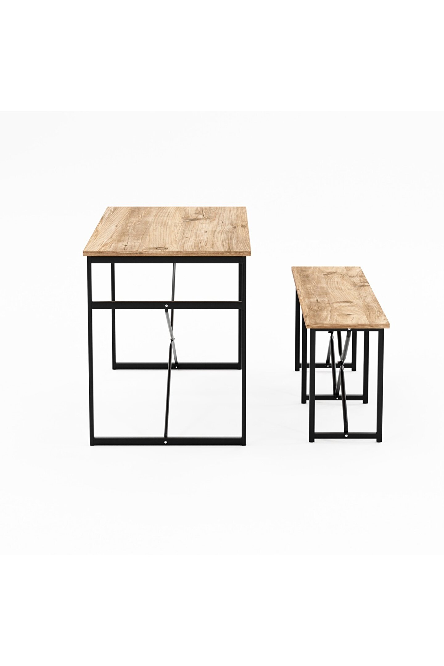 Masa Ölçüleri : Tabla: 120x60 Cm Yükseklik: 70 Cm Bench Ebatlar: Genişlik: 120 cm Derinlik: 32 cm Yükseklik: 45 cm Ürün Ayakları Demir Elektro Statik Boyalıdır. ; Üst Tabla Kısmı Suntalam Malzemeden Üretilmiştir . ; 1 Adet Masa 1 Adet Bench Gönderilecektir.;
