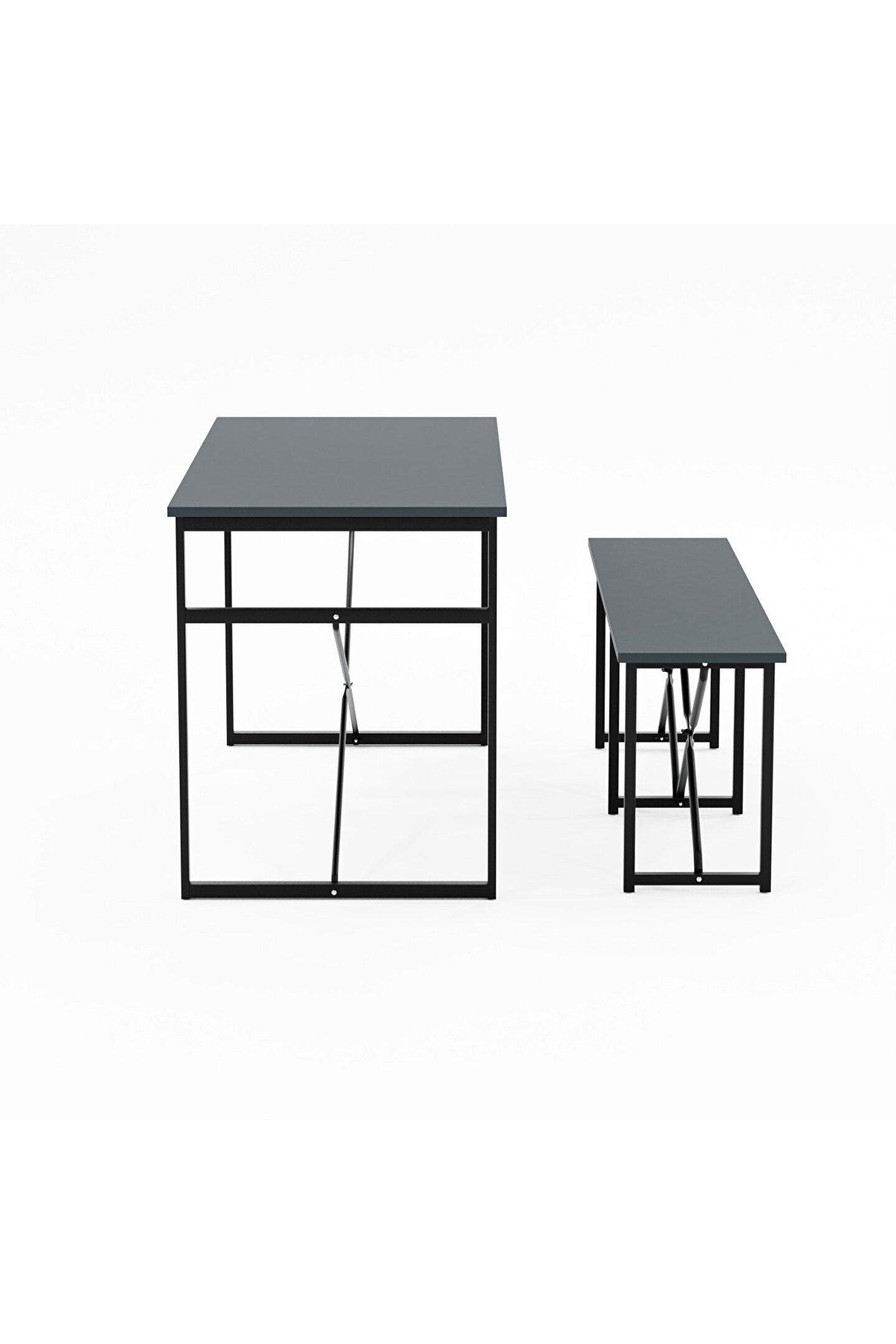 Modern tasarımı ve fonksiyonel yapısıyla   Masa Takımı Bench Bank Masa Seti 120x60 Mutfak ve Yemek Masası Füme 1561 her mutfakta ve yemek alanında öne çıkan bir mobilya setidir. Geniş masa yüzeyiyle, aile yemekleri ve sosyal toplantılar için ideal bir alan sağlar. Set, günlük kullanıma uygun dayanıklılıkta malzemelerle üretilmiş olup, hem rahatlık hem de estetik bir görünüm sunar.