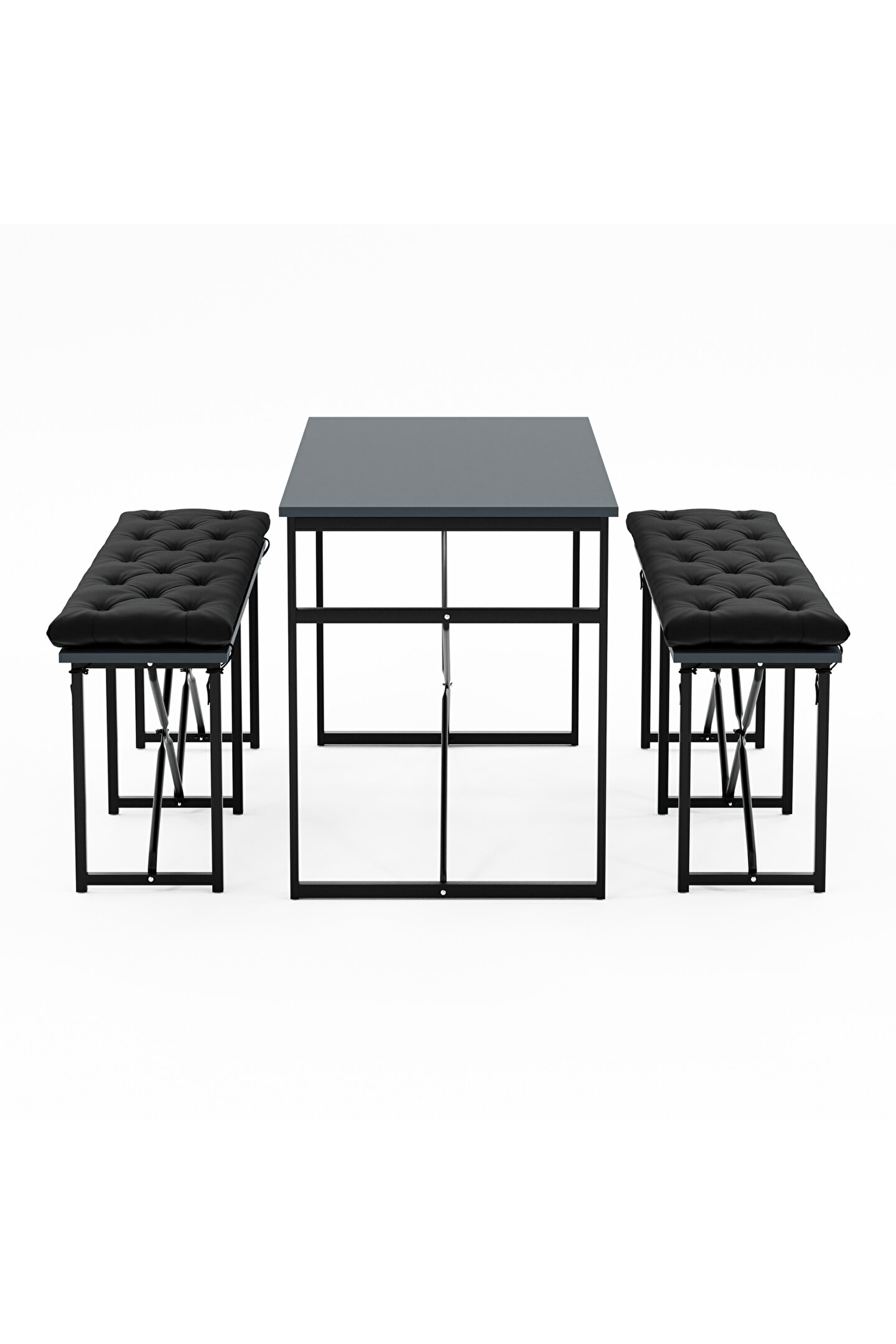 Masa Takımı Minderli Bench Bank Masa Seti 120x60 Masa Mutfak Masası Yemek Masası Füme 1556, modern ve minimalist tasarımıyla öne çıkan, mutfak veya yemek odaları için ideal bir mobilya setidir. Pratik ve şık bu masa seti, her türlü modern iç mekan dekorasyonuna uyum sağlar ve kullanıcılarına rahat bir yemek veya çalışma alanı sunar. Masa ve bench , sade ve zarif çizgileriyle her mekana doğal bir uyum sağlar.