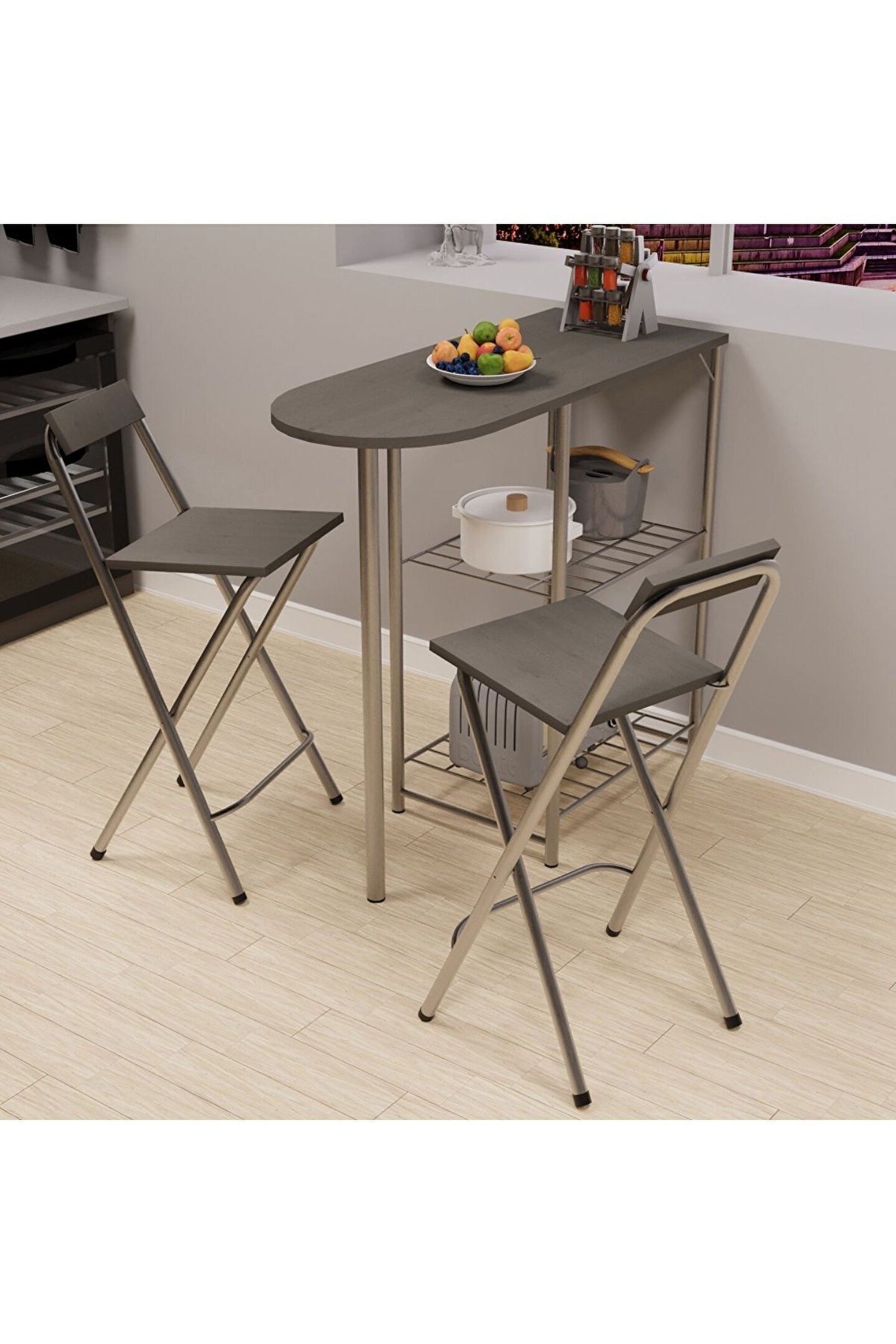 eportatif Mutfak Bar Masa Sandalye Takımı Katlanır Bar Sandalye 2 Kişilik Mutfak Masası Gri 1297