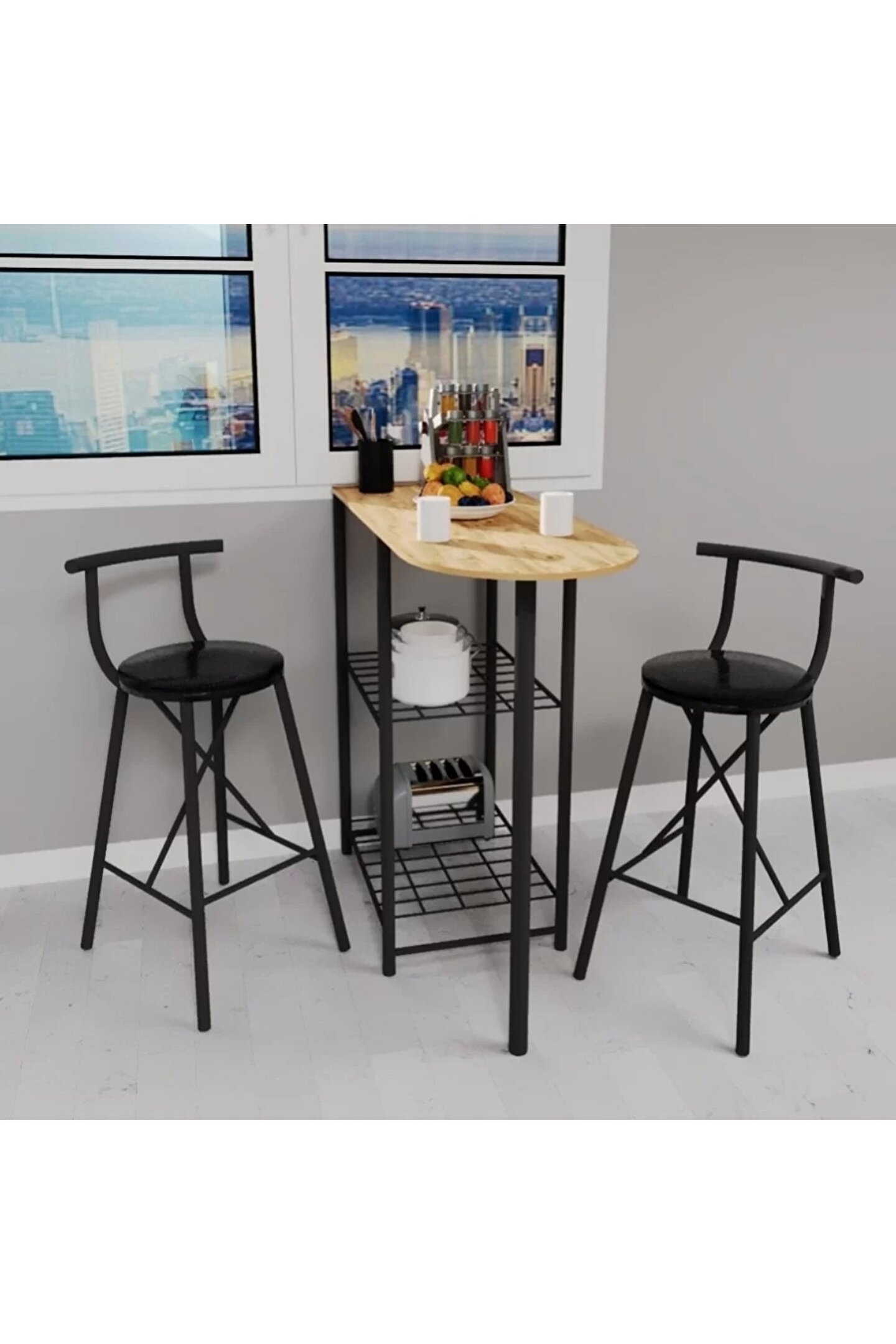 Mutfak Bar Masa Sandalye Takımı Katlanır Döşemeli Bar Sandalye 2 Kişilik Çam 1313, kullanıcıların yaşam alanlarını optimize etmelerini sağlayan pratik ve şık bir mobilya seçeneğidir.