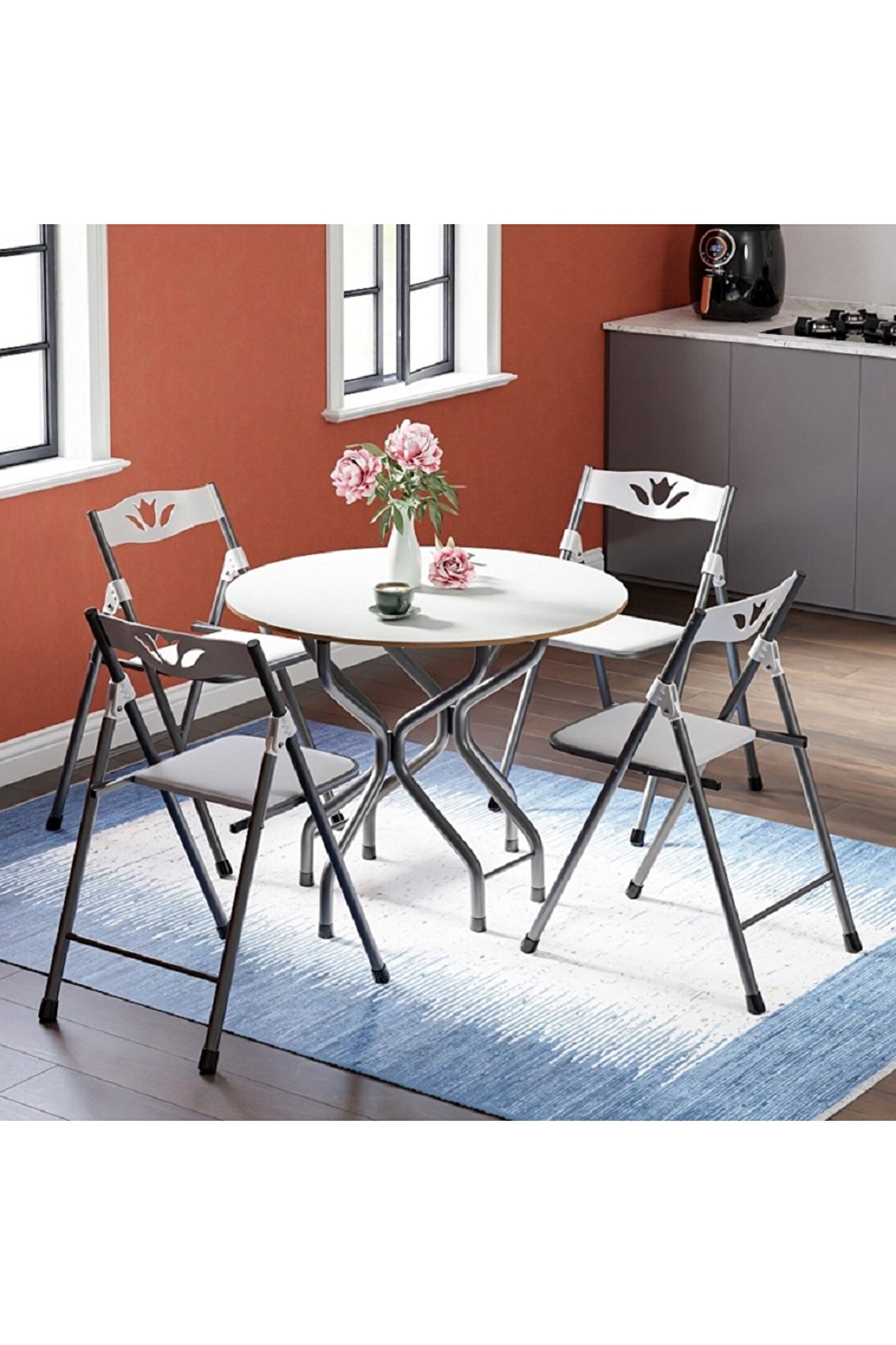 Mutfak Masa Sandalye Seti Bahçe Yemek Masa Seti Yuvarlak Beyaz, dikkat çeken özellikleri, hoş tasarımı ve kullanışlılığı ile bir adım öne çıkıyor. Evler ve işletmeler için uygun olan model, pek çok insanın favorisi konumunda. Mutfak Masa Sandalye Seti Bahçe Yemek Masa Seti Yuvarlak Beyaz Nedir? Kırma masa sandalye seti olarak bilinen ürün, pratikliği ve modern dizaynı ile beğeni kazanıyor. Hem evlerde hem de işletmelerde sıklıkla kullanılan Mutfak Masa Sandalye Seti Bahçe Yemek Masa Seti Yuvarlak Beyaz, eşsiz bir deneyim vadediyor. Mutfak masası seti, dört tane sandalye ve bir tane kırma masadan oluşuyor. Ürün kullanılmadığı zamanlarda masalar ve sandalyeler katlanarak bir kenarda konumlandırılabilir. Bu yönüyle de ilgi çeken set, özellikle de küçük mutfak alanları için benzersiz bir seçenek olarak karşınıza çıkıyor. Her türlü alanda kullanım imkanı sağlayan masa sandalye seti, bütün mutfak dekorasyonlarıyla uyumlu olacak şekilde dizayn edilmiştir. Bahçe masası seti olarak da sıklıkla tercih edilen Mutfak Masa Sandalye Seti Bahçe Yemek Masa Seti Yuvarlak Beyaz, hem tasarımı hem de kalitesi ile fark yaratıyor. Bahçe dekorasyonunda iyileştirme yapmanıza izin veren set, açık havanın tadını çıkarmak, dinlenmek, ailenizle ve arkadaşlarınızla sohbetler edip bir şeyler yemek istediğinizde biçilmiş kaftandır. Sağlamlığı nedeniyle de göz dolduran set, bahçeler için en doğru seçimlerden biridir. Yemek masası seti, yemek saatlerinin çok daha keyifli ve konforlu bir şekilde tamamlanmasına yardımcı olur. Dört kişilik aileler için ideal bir seçenek olarak kabul edilen Mutfak Masa Sandalye Seti Bahçe Yemek Masa Seti Yuvarlak Beyaz, mutfaklara ya da yemek odalarına dahil edilebilir. Mutfak Masa Sandalye Seti Bahçe Yemek Masa Seti Yuvarlak Beyaz Özellikleri Nelerdir? Mutfak Masa Sandalye Seti Bahçe Yemek Masa Seti Yuvarlak Beyaz, birçok özelliği ile kullanıcıların ilgisini çeker. Ürünün öne çıkan özellikleri şunları kapsar: Masa 90 cm çap ölçüsüne sahiptir.; Masanın yerden yüksekliği 72 cm kadardır.; Masa elektrostatik boyalı metal ayaklar içerir.; Masa, MDF profildir.; Masa, katlanabilir iki ayrı kanat içerir.; Sandalye, salon, mutfak ve balkon gibi iç mekanlarda kullanılmak için özel olarak tasarlanmıştır.; Sandalye ve masa oldukça şık ve zarif bir görüntü sunar.; Bulunduğu ortama ayrı bir güzellik katar.; Sandalyelerin mafsalları ve sert bölümü plastik bileşen barındırır.; Sandalyelerin oturma alanları süet kumaş kaplıdır.; Sandalyenin kapalı ölçüsü 90 x 45 x 5 cm şeklindedir.; Sandalyenin oturma yüksekliği 45 cm’dir.; Mutfak Masa Sandalye Seti Bahçe Yemek Masa Seti Yuvarlak Beyaz Hangi Avantajları Sunuyor? Mutfak Masa Sandalye Seti Bahçe Yemek Masa Seti Yuvarlak Beyaz pek çok avantajı beraberinde getiren eşsiz bir set olarak öne çıkar. Ürün, oldukça çok yönlüdür. Çünkü her türlü alanda kullanım fırsatı sunar. Mutfak, bahçe, ofis, salon ve balkon gibi her türlü alanda konumlandırılabilir. Balkon masa seti ihtiyaçlarınıza da hitap eden Mutfak Masa Sandalye Seti Bahçe Yemek Masa Seti Yuvarlak Beyaz, tüm boyutlardaki balkonlarda kullanılabilir. Katlanır özelliğinden dolayı küçük balkonlar bile bu ürünler ile harika bir görünüm kazanır. Ürün, şık ve benzersiz tasarımı ile ortamların havasını değiştirir. Katlanır mutfak masa sandalye seti, kullanışlı ve pratik yapısı sebebi ile ihtiyaçları anında karşılar. Mutfak Masa Sandalye Seti Bahçe Yemek Masa Seti Yuvarlak Beyaz, bütün dekorasyon stilleriyle anında uyum oluşturur. Ürünü ekonomik bir şekilde satın almak için sizde hemen sepete ekleyebilirsiniz.