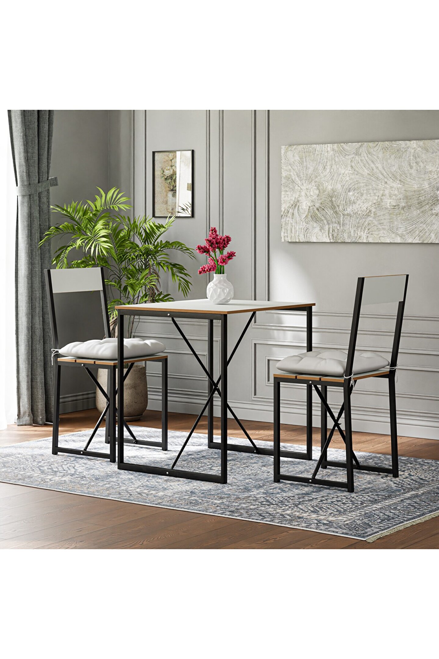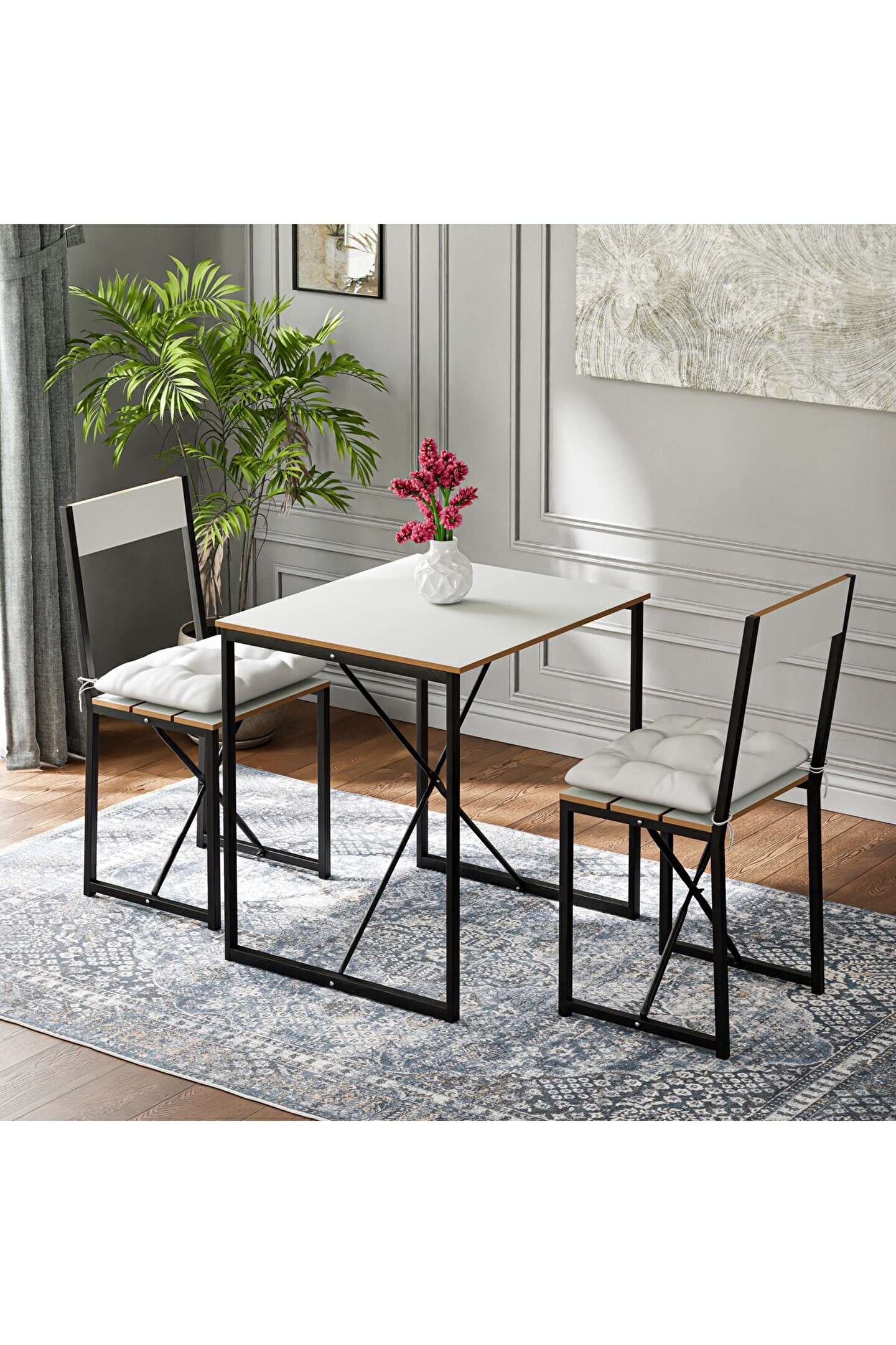 2 kişilik mutfak masası, iki tane sandalye ve bir adet masadan oluşur. Set halinde satışa sunulan mutfak masa takımı, iki kişilik olarak dizayn edilmiştir. Ürün, küçük mutfaklarda harika bir duruş sergiler. Alanı optimize etmenize ve en iyi şekilde dekorasyonu tamamlamanıza yardımcı olur. Trend bir tasarım içeren mutfak masa takımı, her türlü dekorasyon stili ile anında uyum oluşturur. Kullanışlı yapısı ve sağlamlığı ile dikkat çeken ürün, konfor seviyenizi bir üst noktaya taşır.