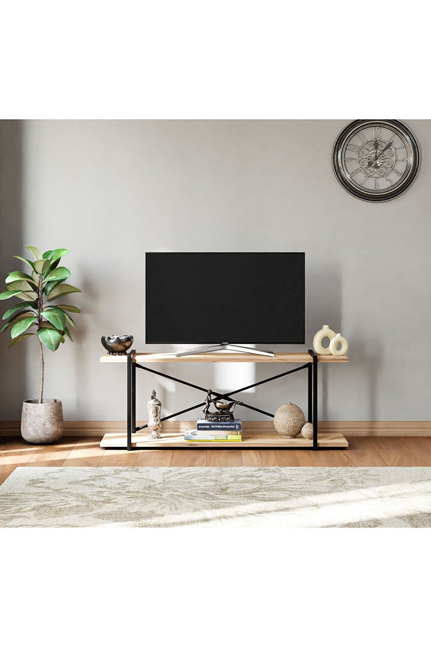 Modern ve şık tasarımıyla dikkat çeken Televizyon ünitesi, çam ağacından üretilmiş olup dayanıklılığı ve estetiği bir arada sunar; Raflı yapısı sayesinde ekstra depolama alanı sağlar, kitaplarınızdan DVD'lerinize kadar çeşitli eşyalarınızı düzenli bir şekilde saklamanızı kolaylaştırır;