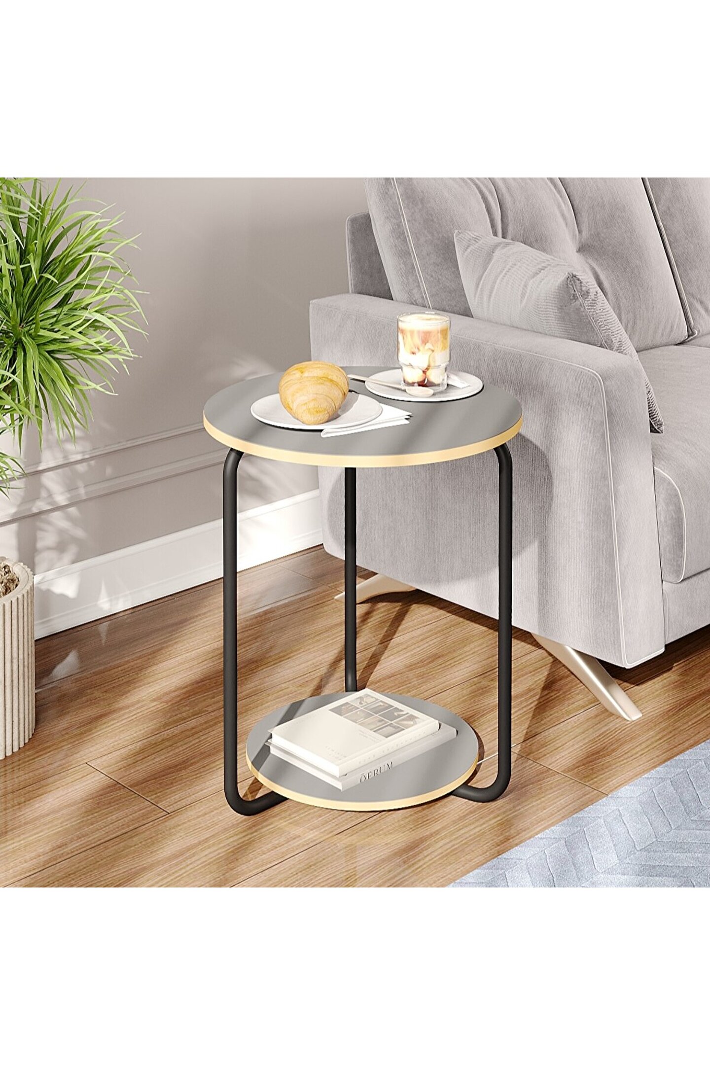 , sahip olduğu özelliklerle öne çıkar. Sehpanın yuvarlak şekli ve ideal ölçüleri kullanışlıdır. Yüksekliği 60 cm, çapı 42 cm olan bu sehpa, hem geniş bir kullanım alanı sunar hem de zarif bir görünüm sağlar. İki raf arası yükseklik 45 cm olup, alt kısımda ekstra depolama alanı sunar. Bu alan, kitaplarınızı, dergilerinizi veya dekoratif objelerinizi düzenli bir şekilde saklamanızı sağlar.