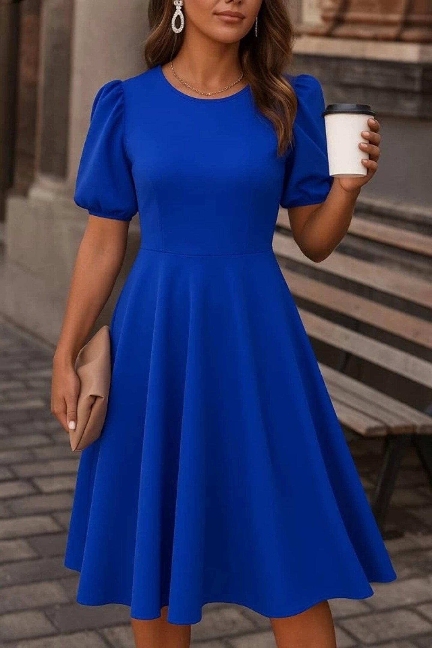 EQURİ Kadın Kısa Balon Kollu Bisiklet Yaka Geniş Kesim Janjan Krep Elbise