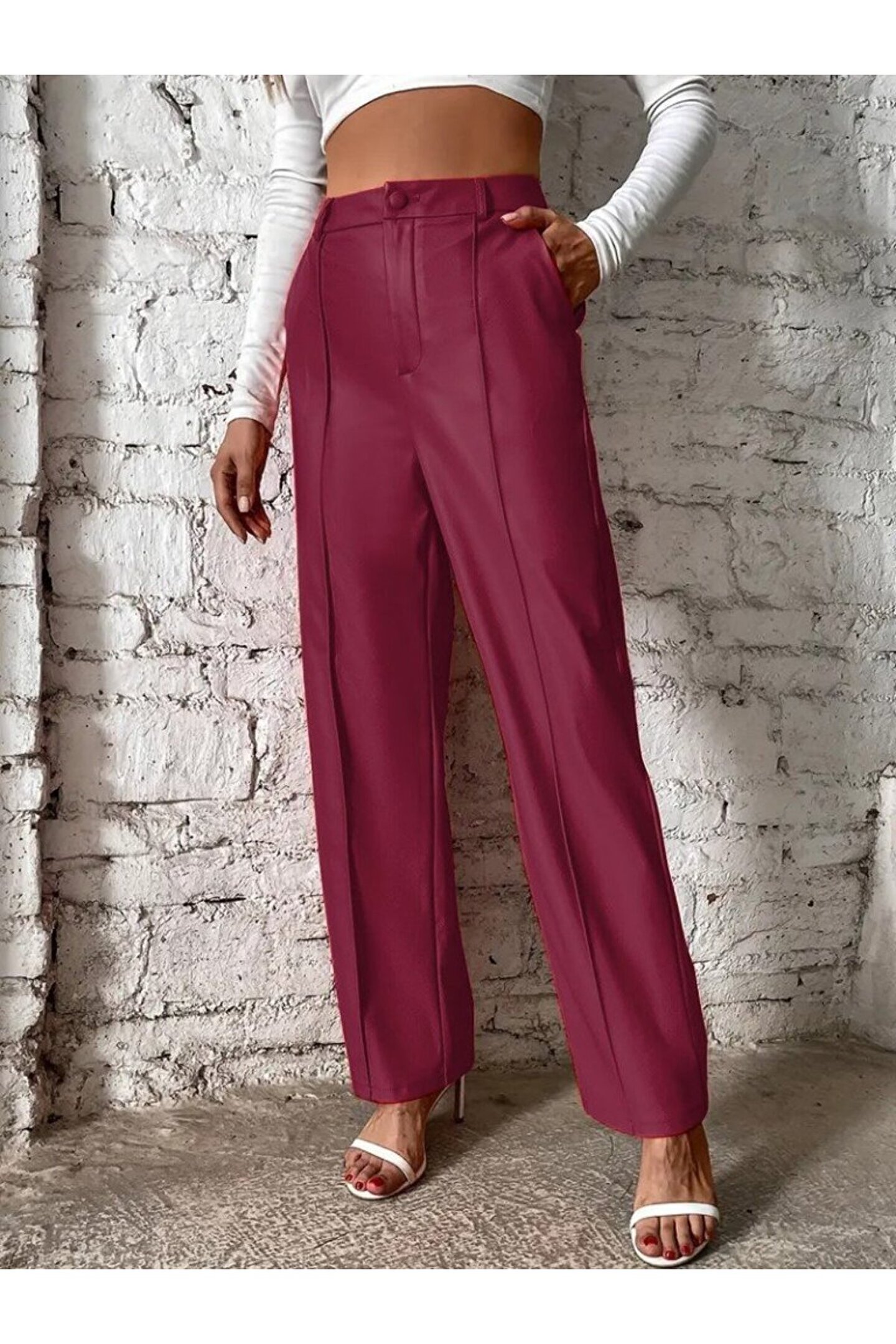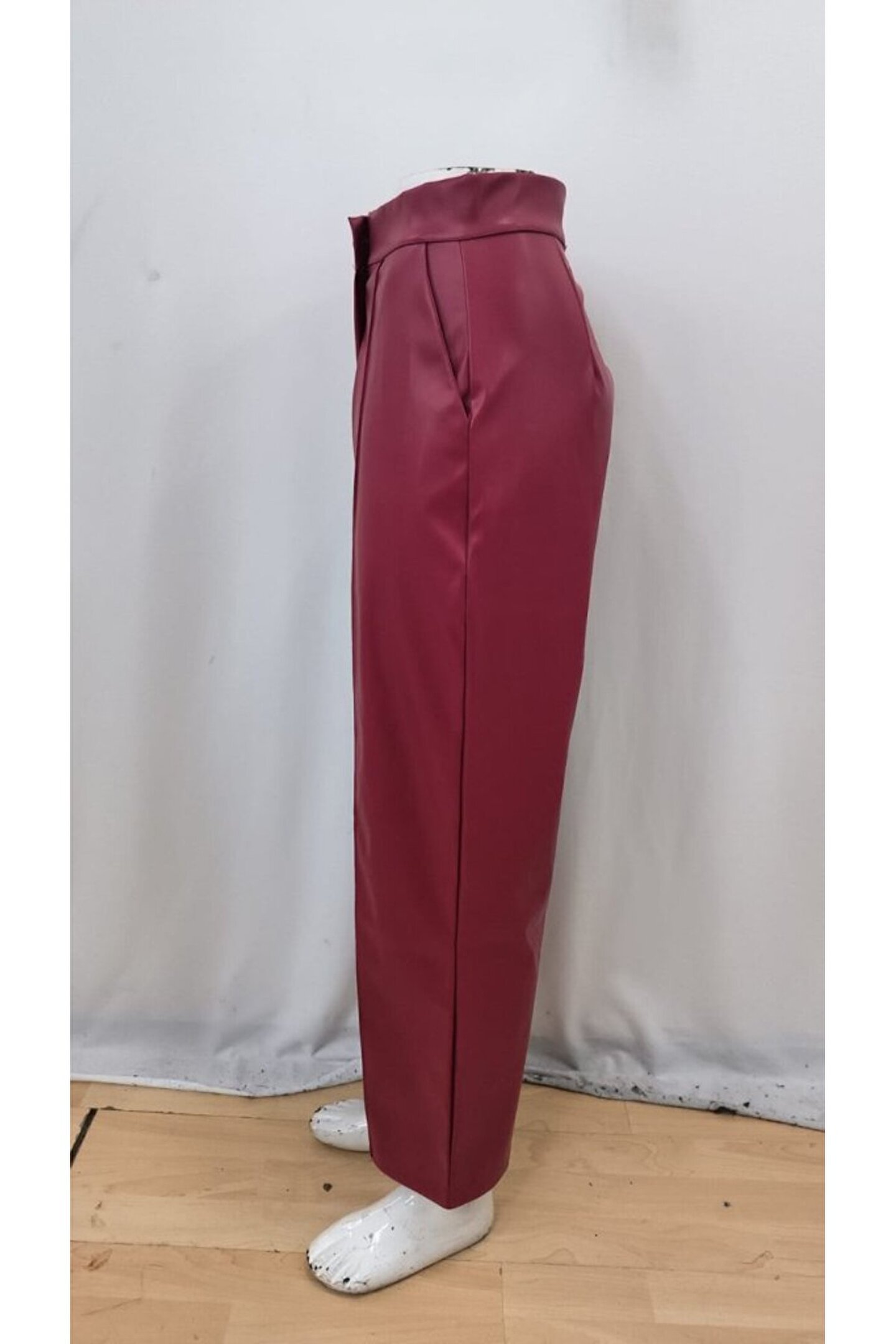 EQURİ Kadın önden Fermuarlı Cepli Geniş Kesim Lame Deri Pantolon