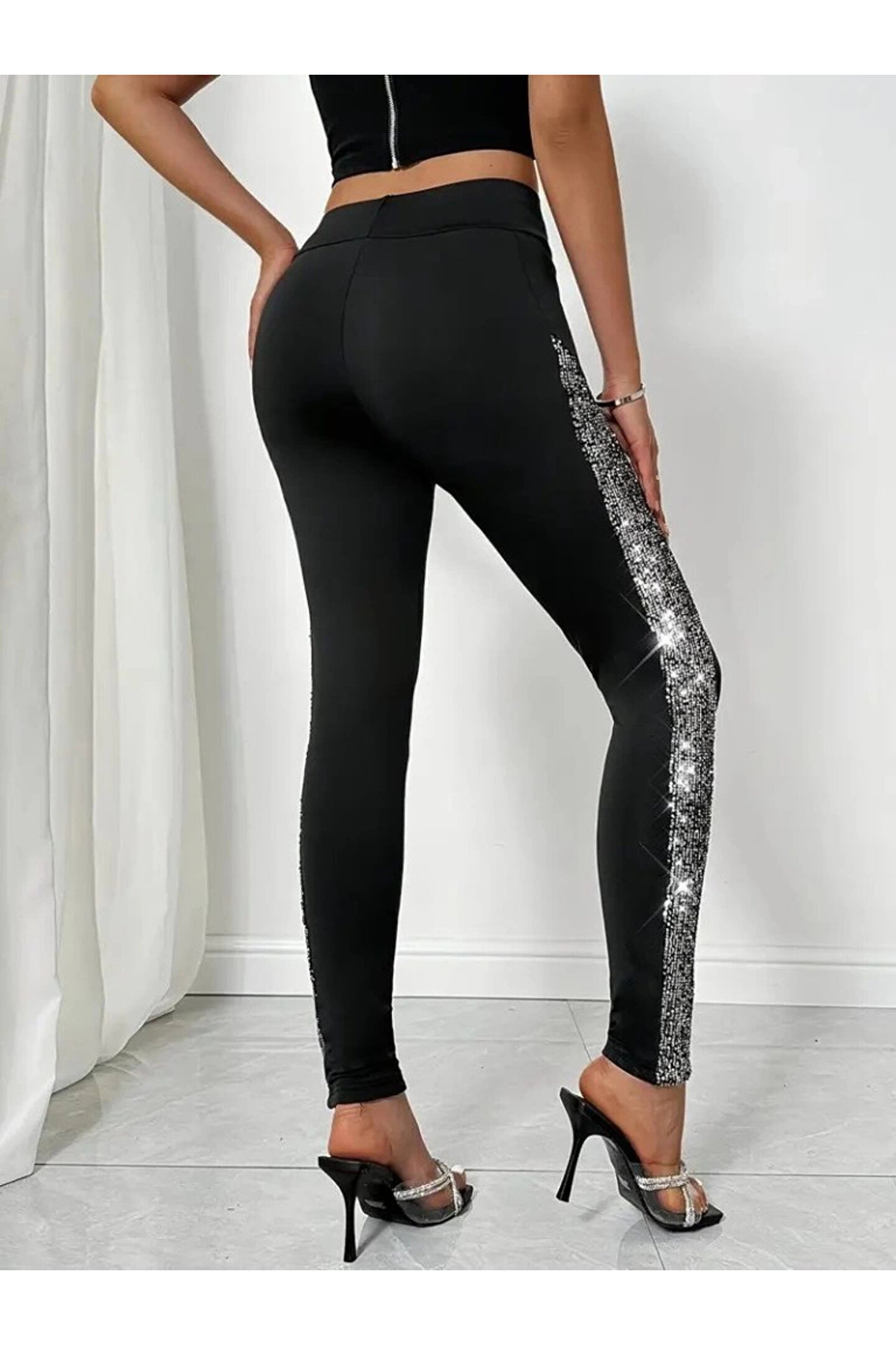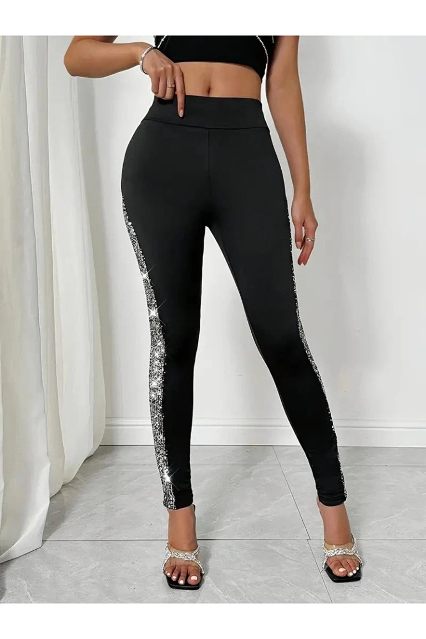 EQURİ Kadın Yüksek Bel Yarı şerit Pul Payetli Dalgıç Tayt