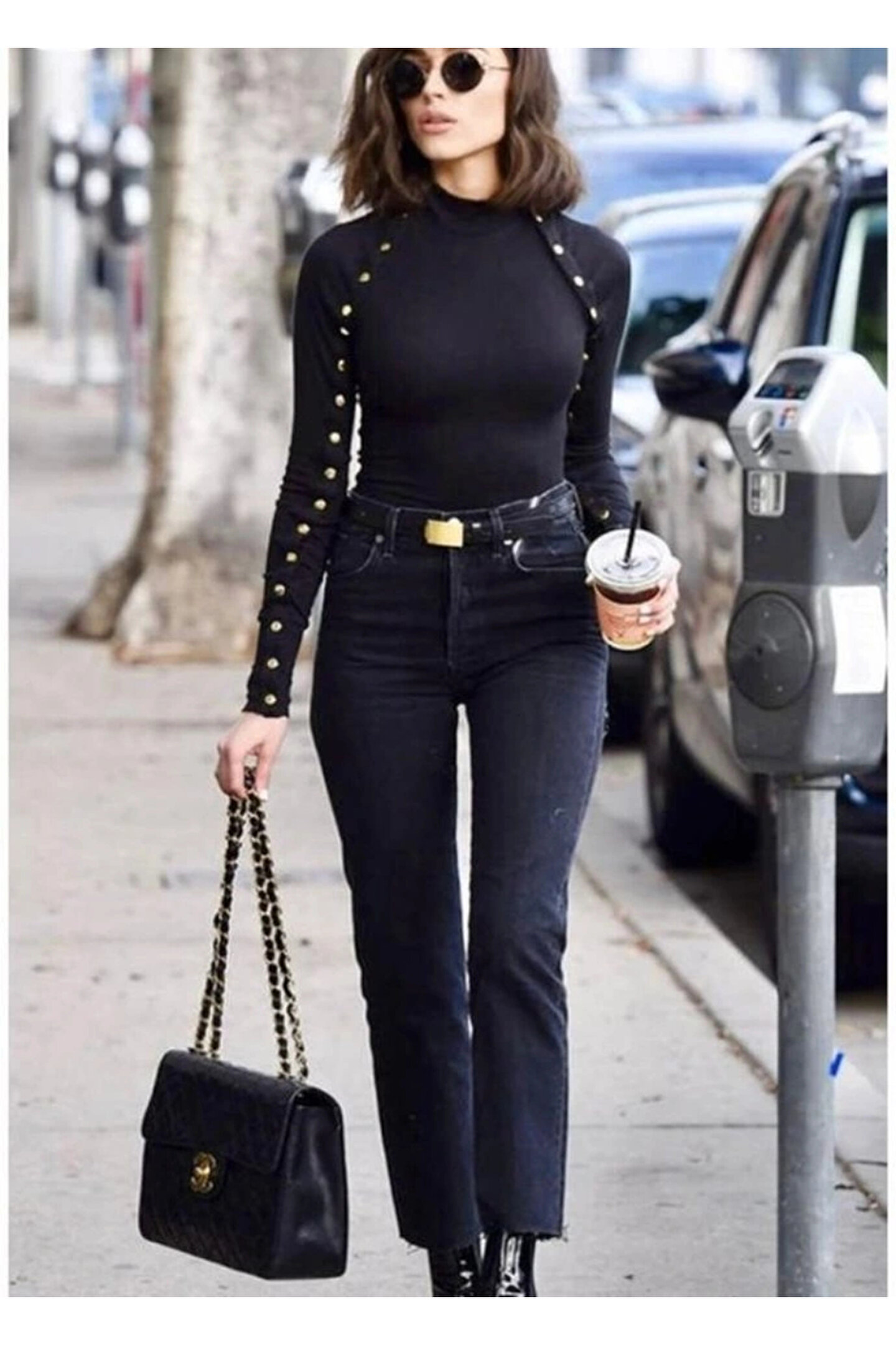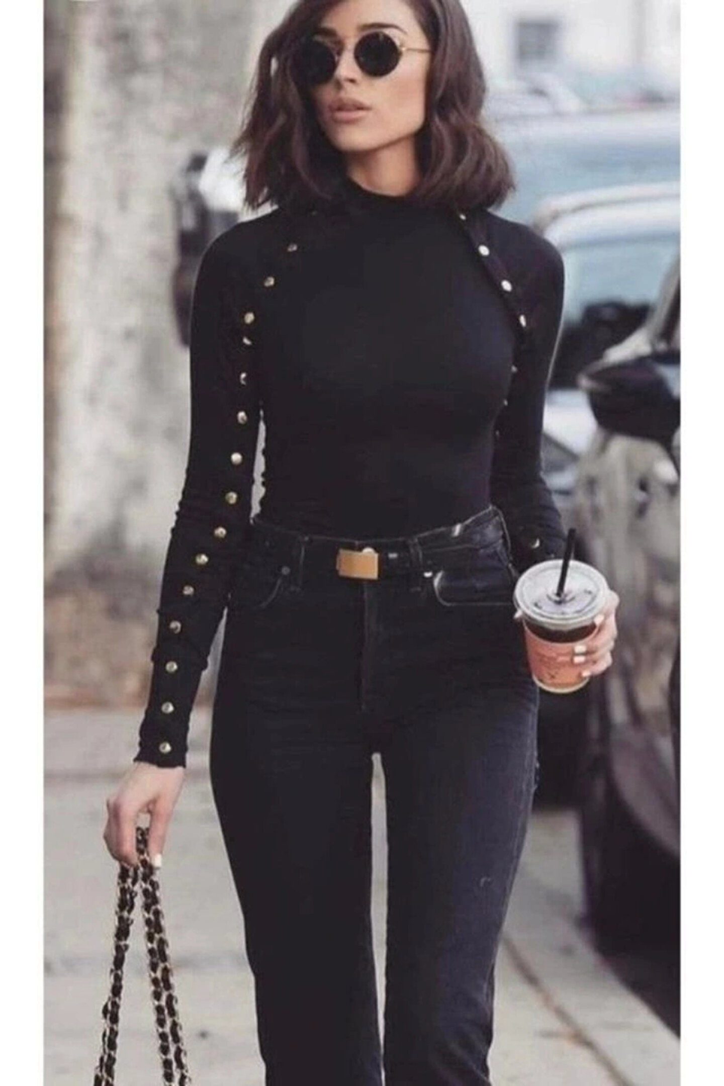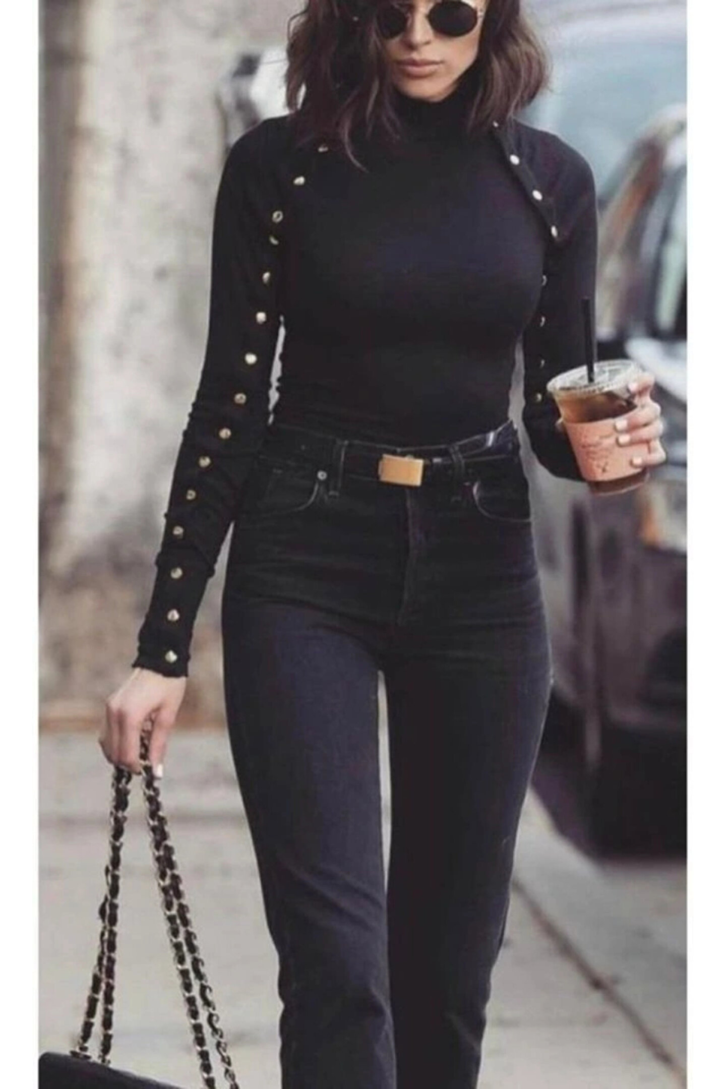 Kadın Bisiklet Yaka Kolları çıtçıtlı Kaşkorse Kumaş Bluz