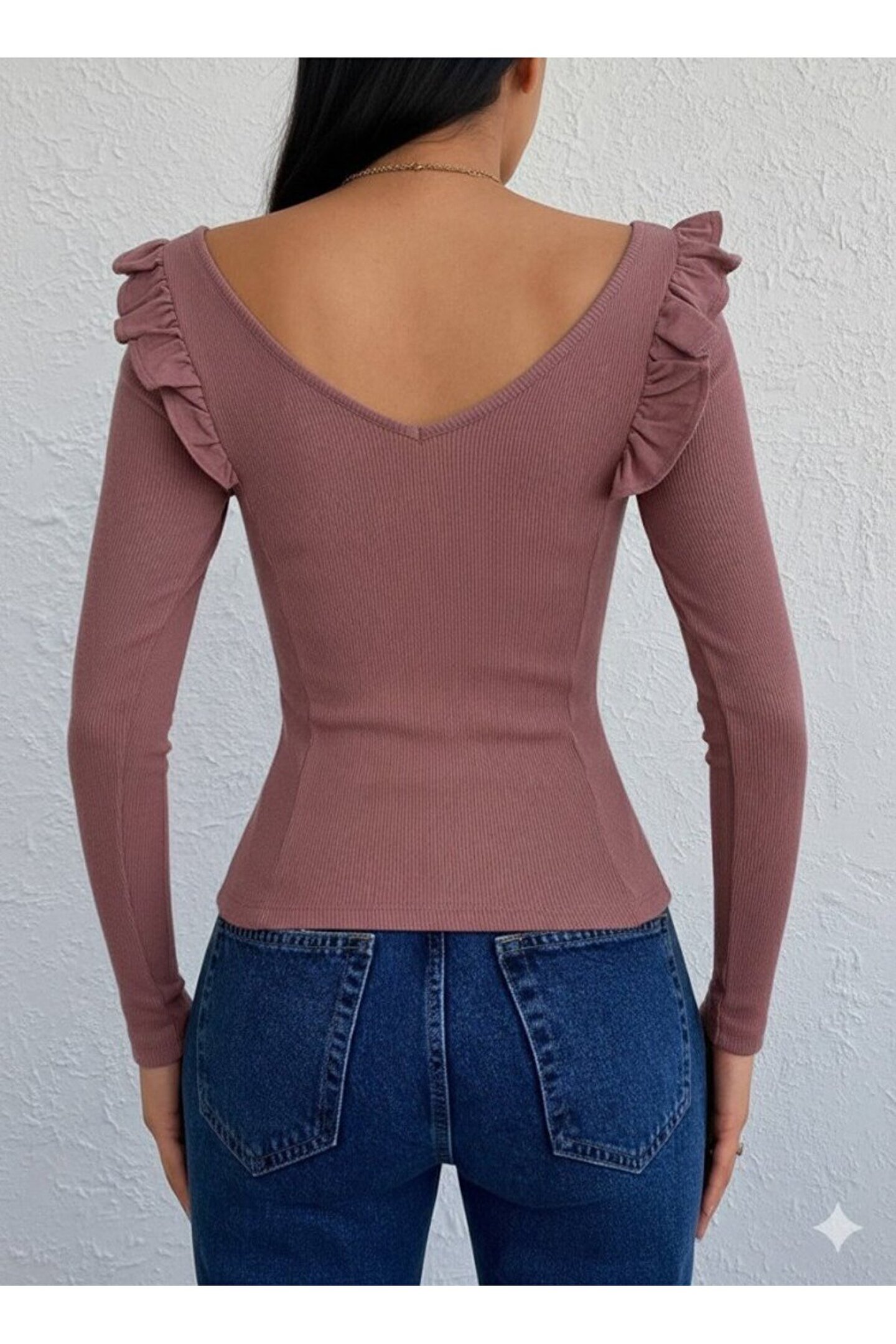 ermege Kadın Omuz Fırfır Detay Uzun Kollu Bluz