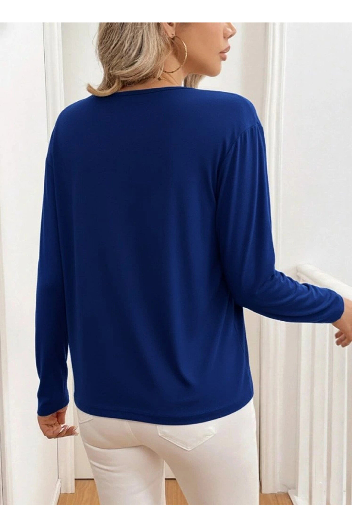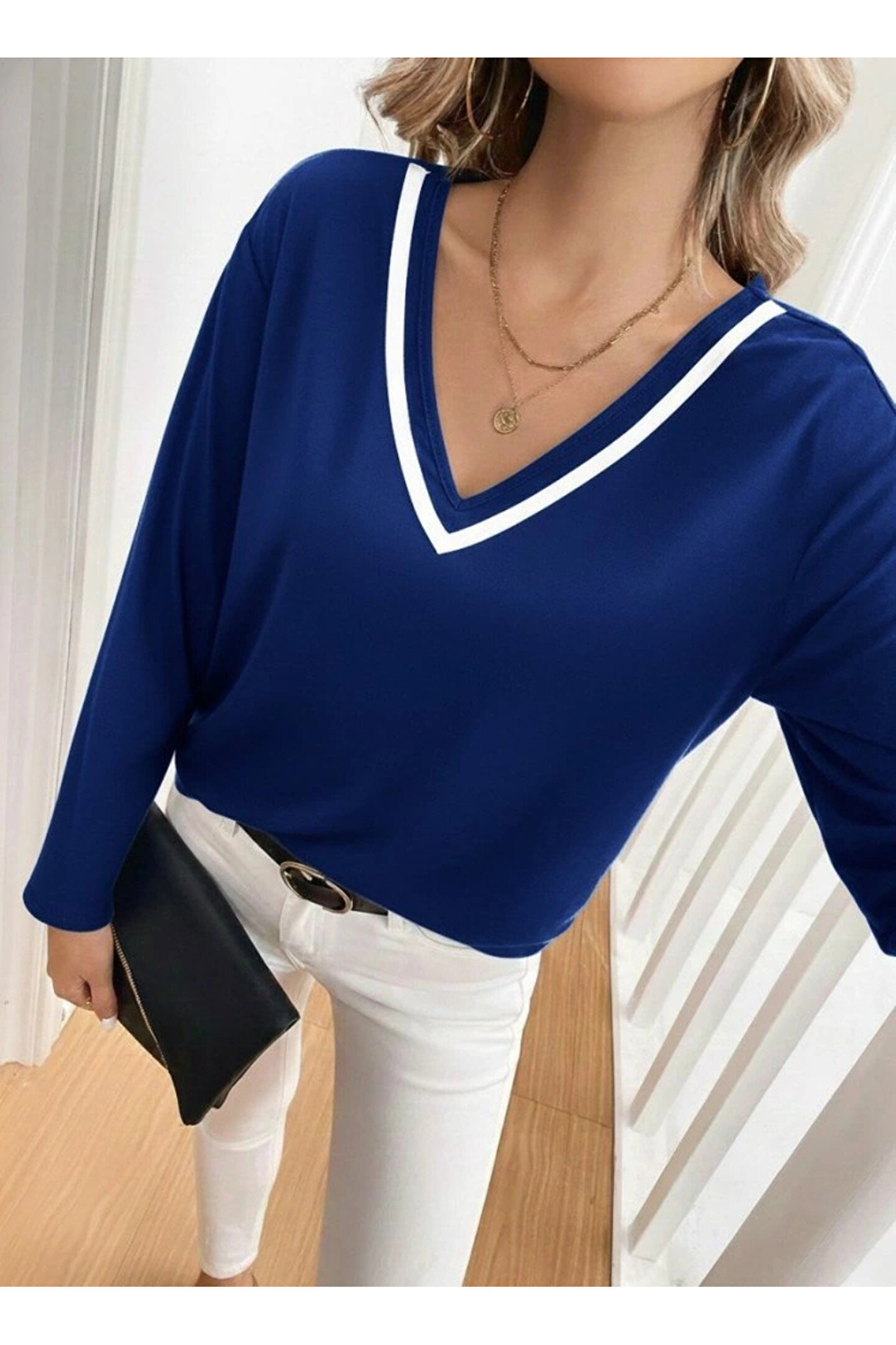 Kadın Uzun Kollu V Yakalı Viskon Iki Iplik Bluz