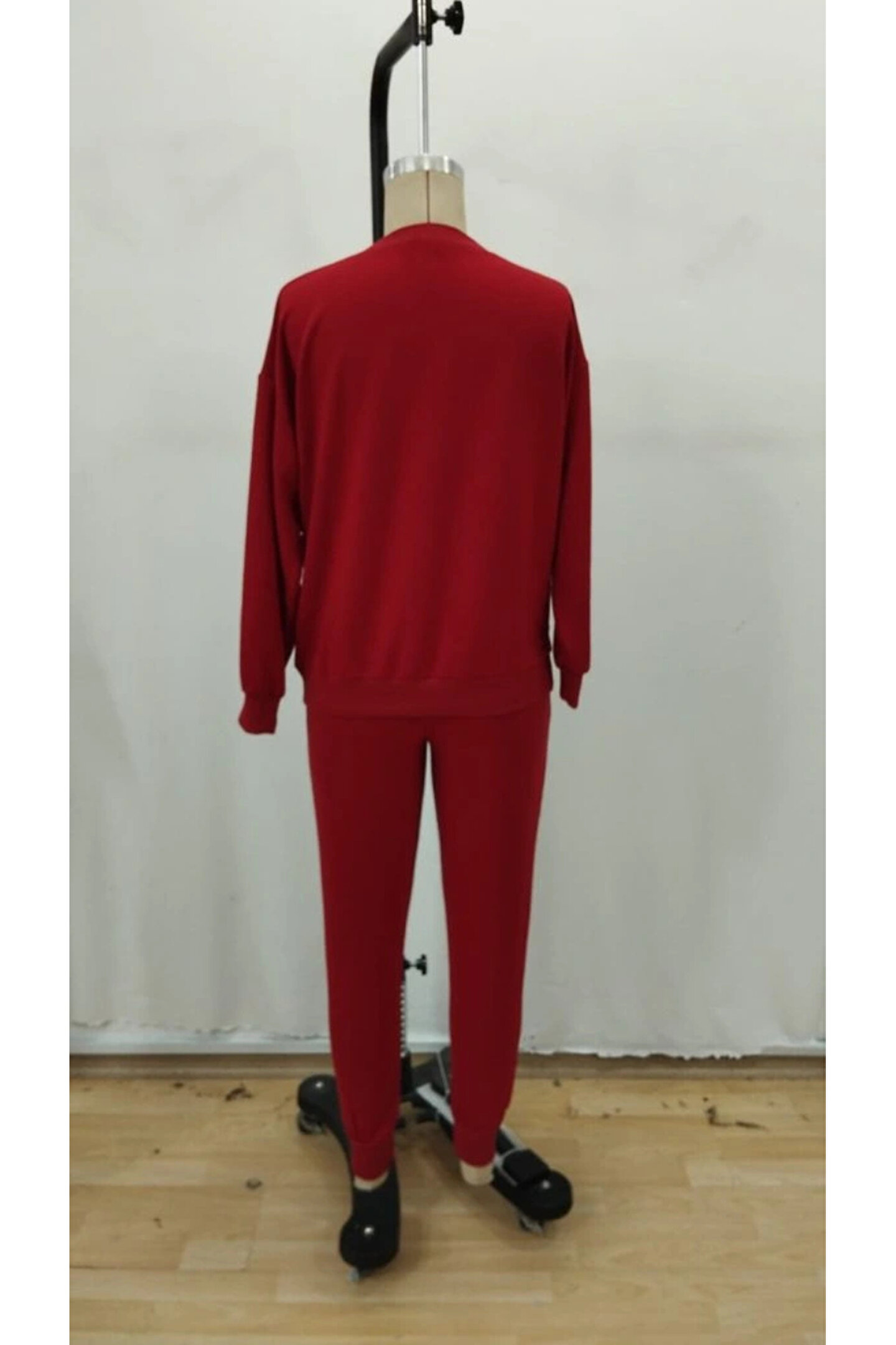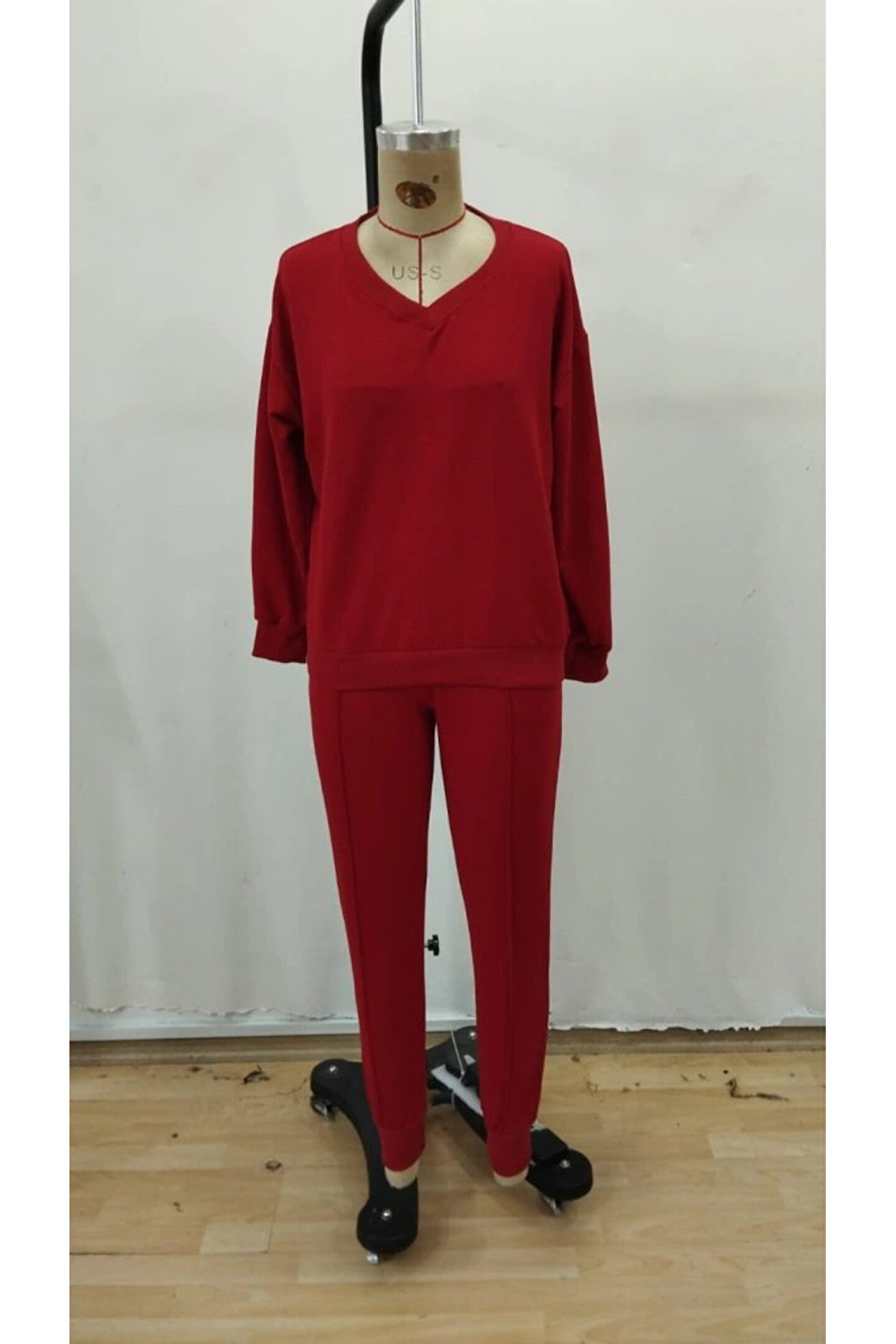 Kadın Uzun Kollu V Yakalı Viskon Iki Iplik Bluz Ve Pantolon Ikili Takım