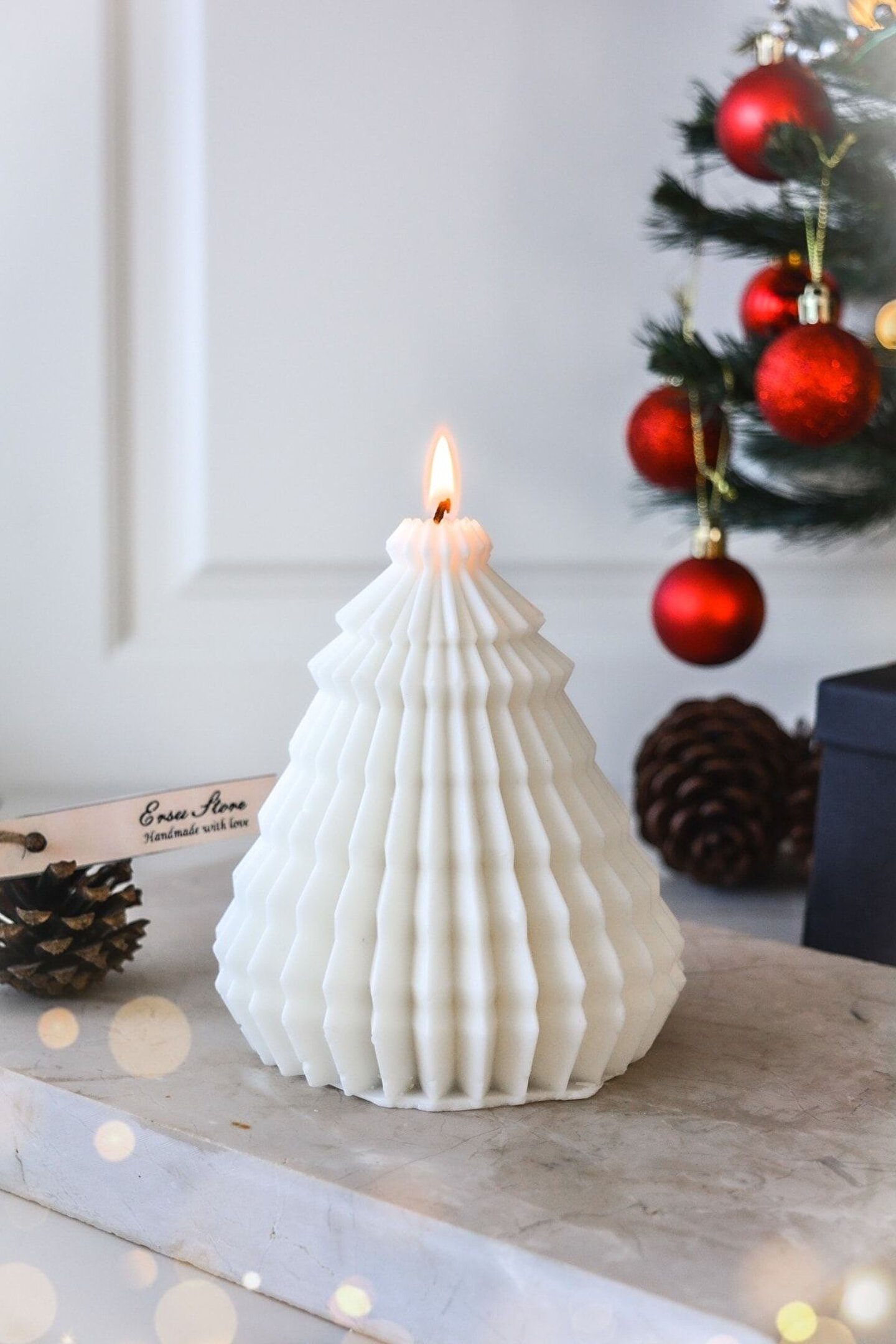 Büyük Boy Tasarım Yıl Başı Çam Ağacı Soya Wax Mum