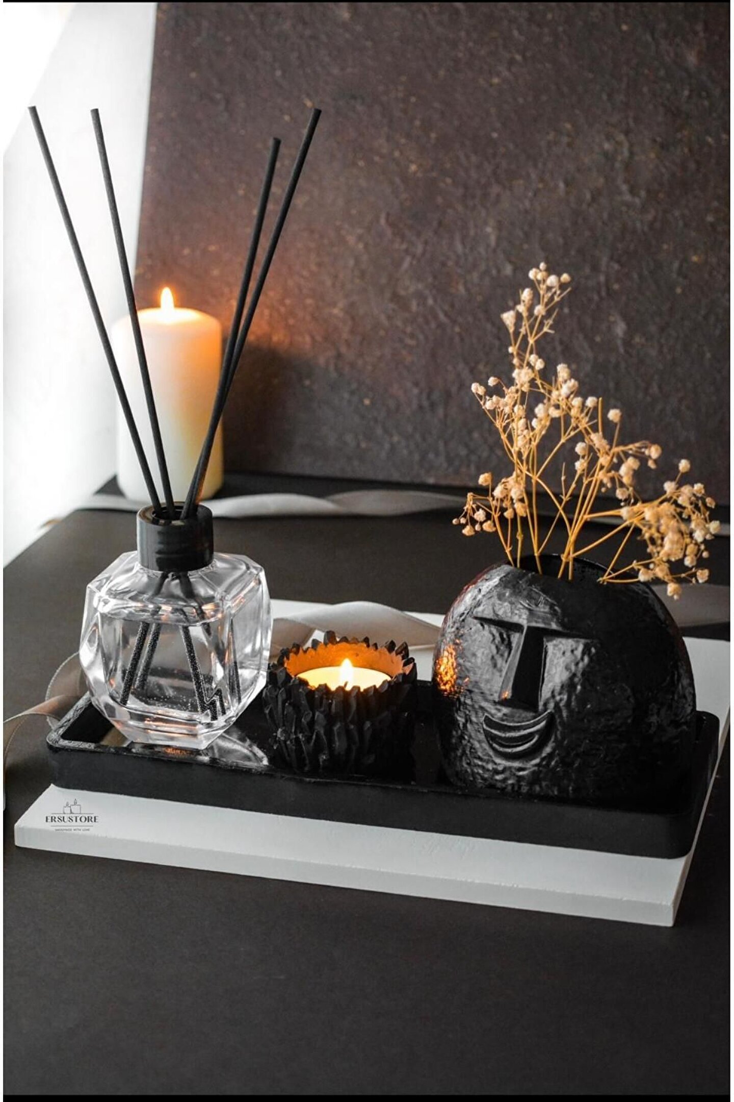 Özel Tasarım Oda Kokusu Vazo Mumluk Seti Hediyelik Dekoratif