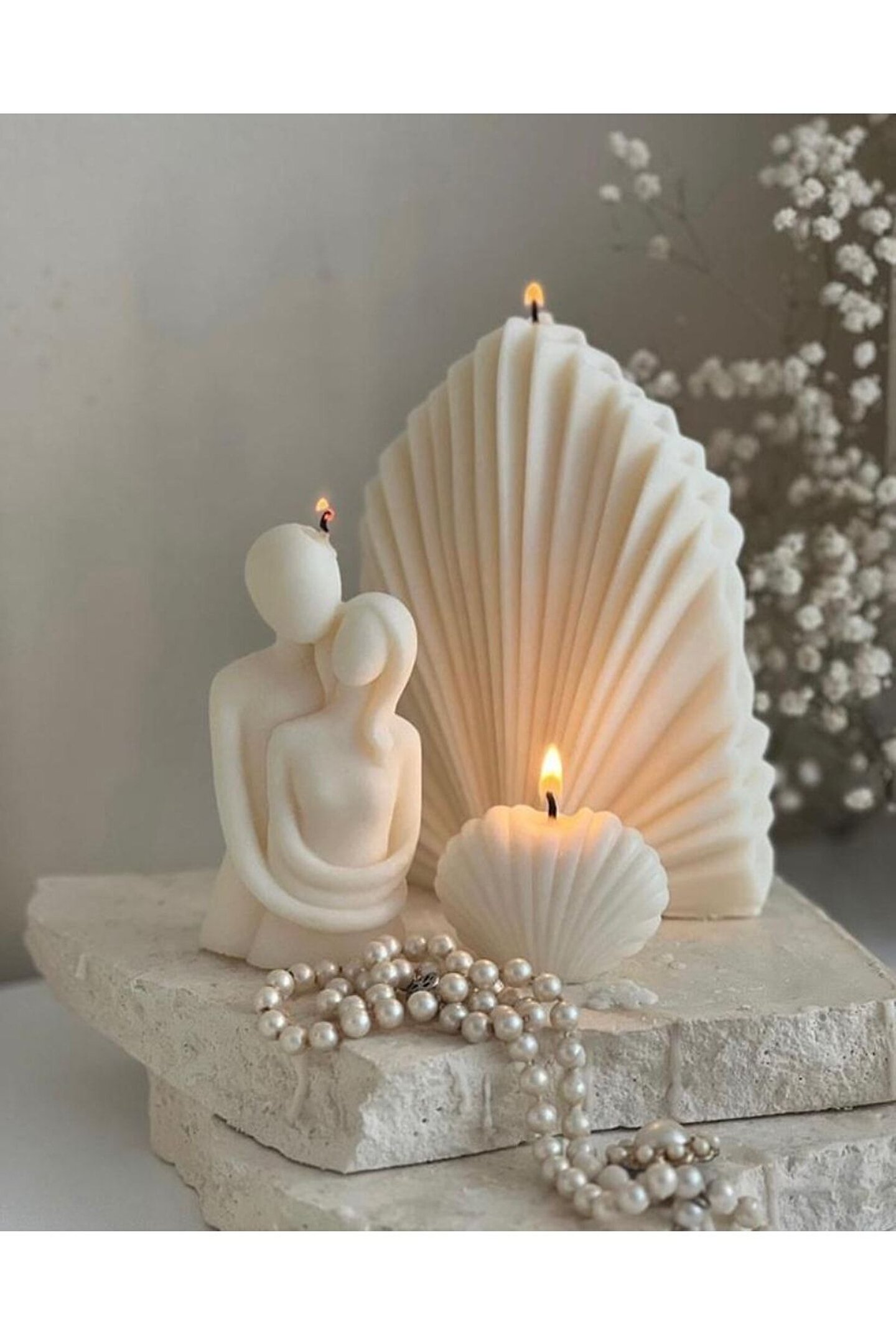 Palm Sarılan Çift ( Sevgili ) Istiridye Vanilya Kokulu Mum Set
