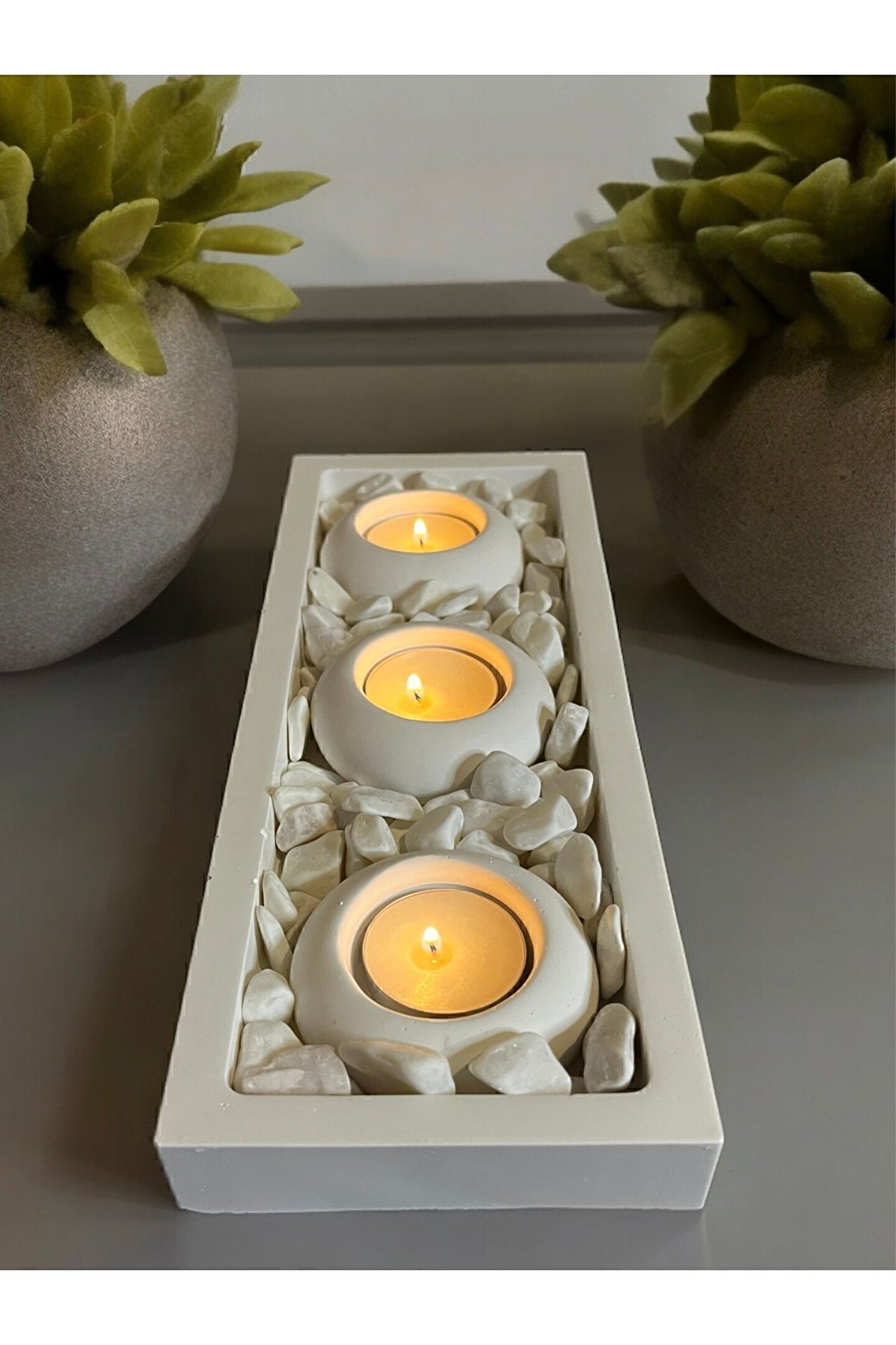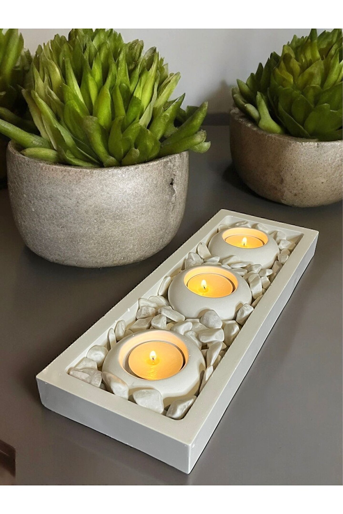Yatay Uzunluk ; 29cm ; Yatay Genişlik ; 11cm ; Dikey Yükselik ; 3cm ; 1 Adet Mumluk 5cm ; Kutu içeriği ; 1 adet tabak, 3 adet mumluk, 1 Poşet çakıl taşı.; ; Taş Tozun'dan üretilmektedir.; Sağlığa hiç bir zararı yoktur.; Ev içerisinde dekorasyon ve hediyelik olarak gayet uygundur.; ; Ürün Tablası 700grm ağırlığında, her bir mumluk 100grm ağırlığındadır.; Koli toplam kilosu 1.2kg gelmektedir.; ; Hasar görmemesi açısından patpat ve kalın karton kutu ile gönderim sağlanacaktır.; ;