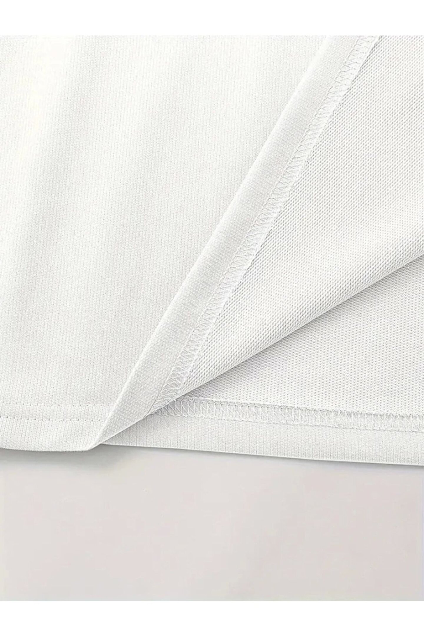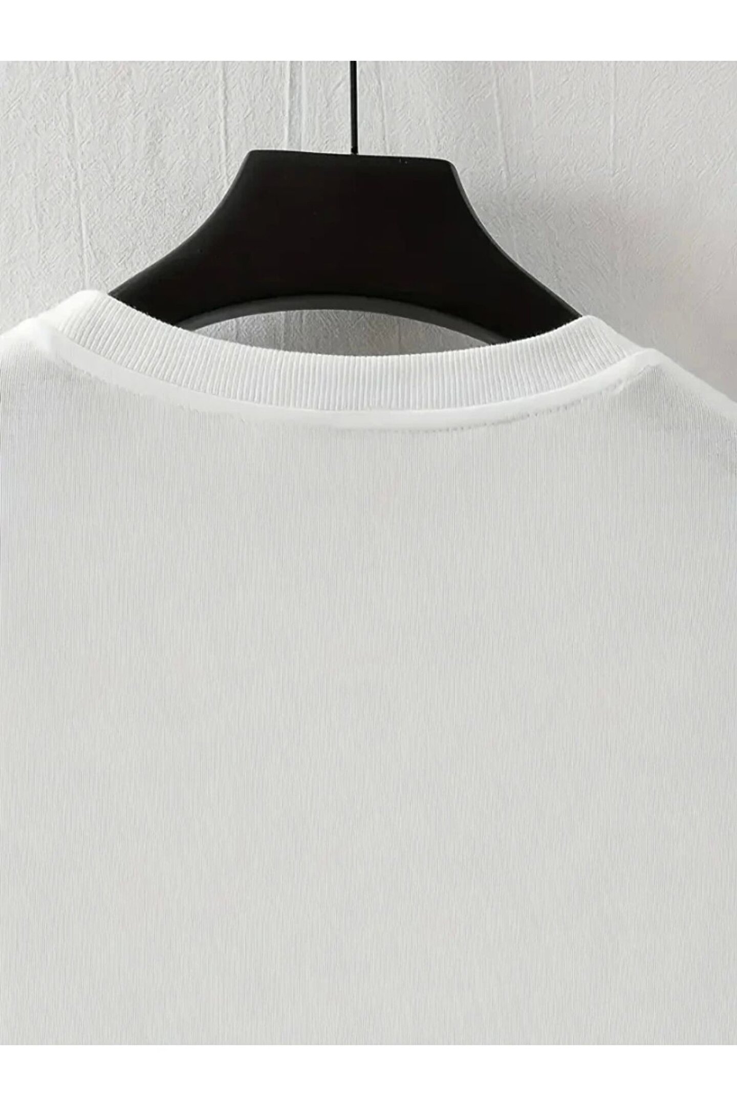 Eserden Baskılı Oversize Bisiklet Yaka T-shirt - Beyaz