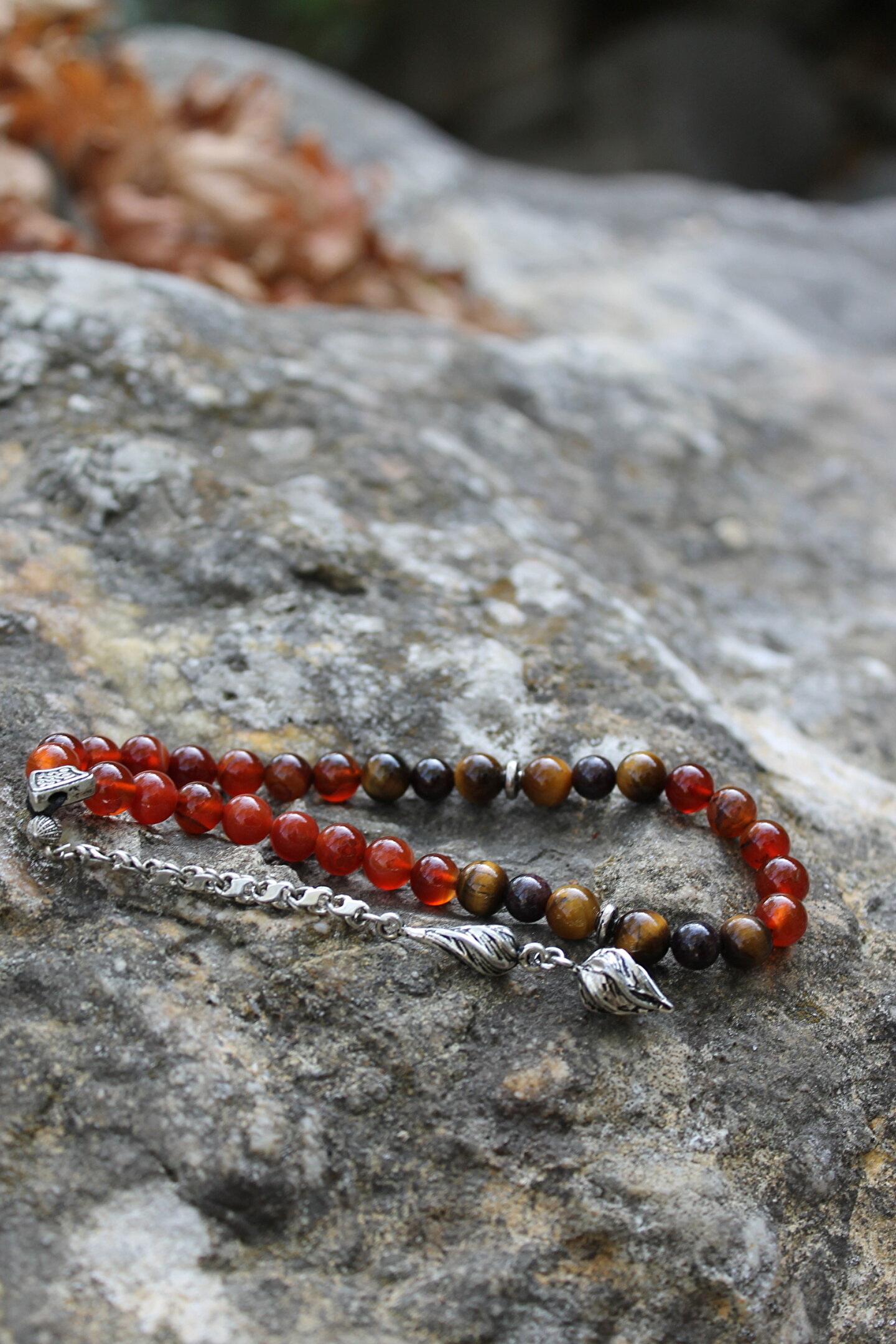 Esre Doğaltaş Takı Aslan Burcu Tesbih Gümüş Kaplama Püskül