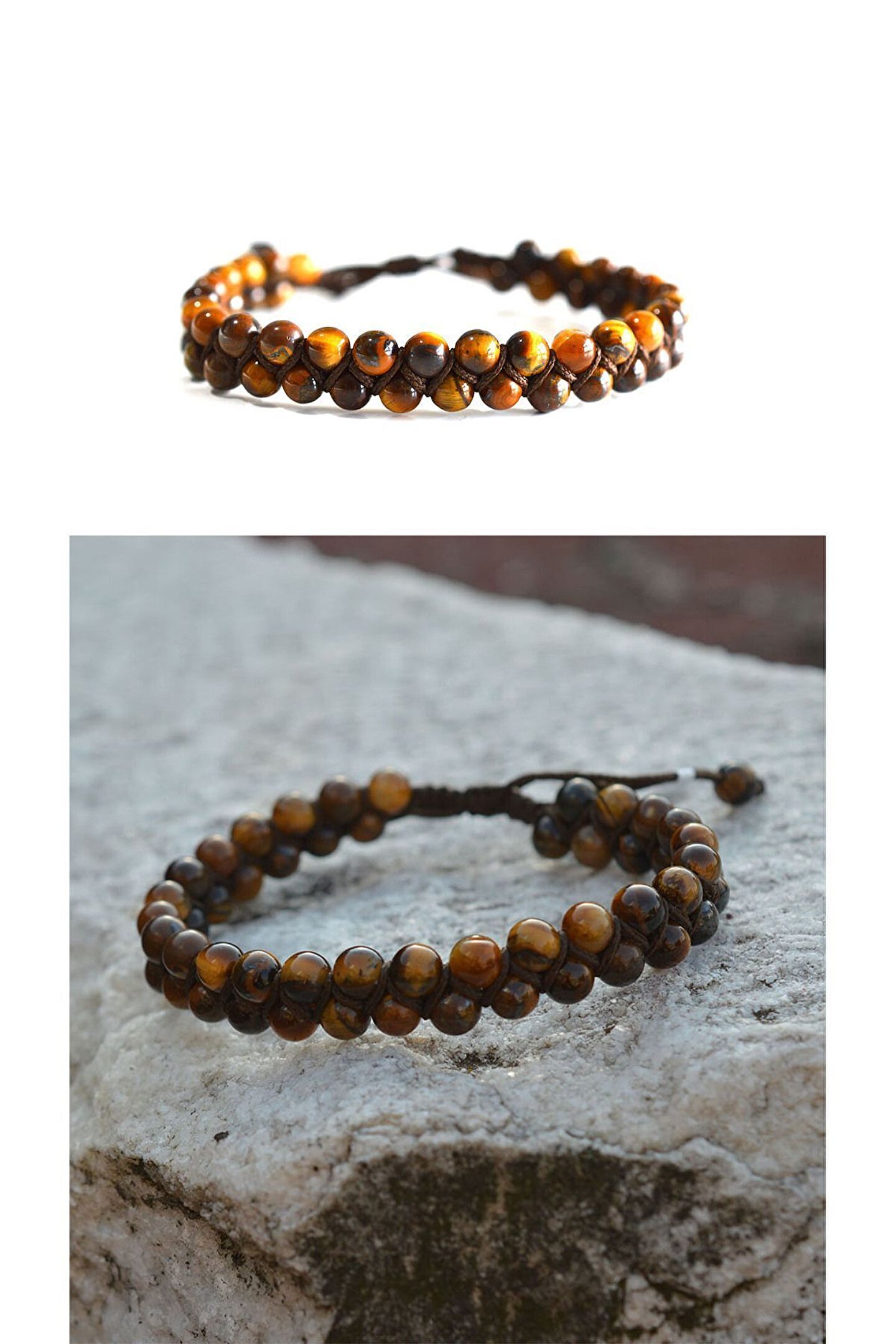 Doğal taş kullanımı sayesinde her bileklik benzersiz ve otantik bir görünüm sunar; Kaplan gözü tasarımı ile dikkat çekici ve şık bir aksesuar seçeneği sağlar; 6 mm kalınlığındaki örgü yapısı, bilekliklere zarif bir dokunuş katar;