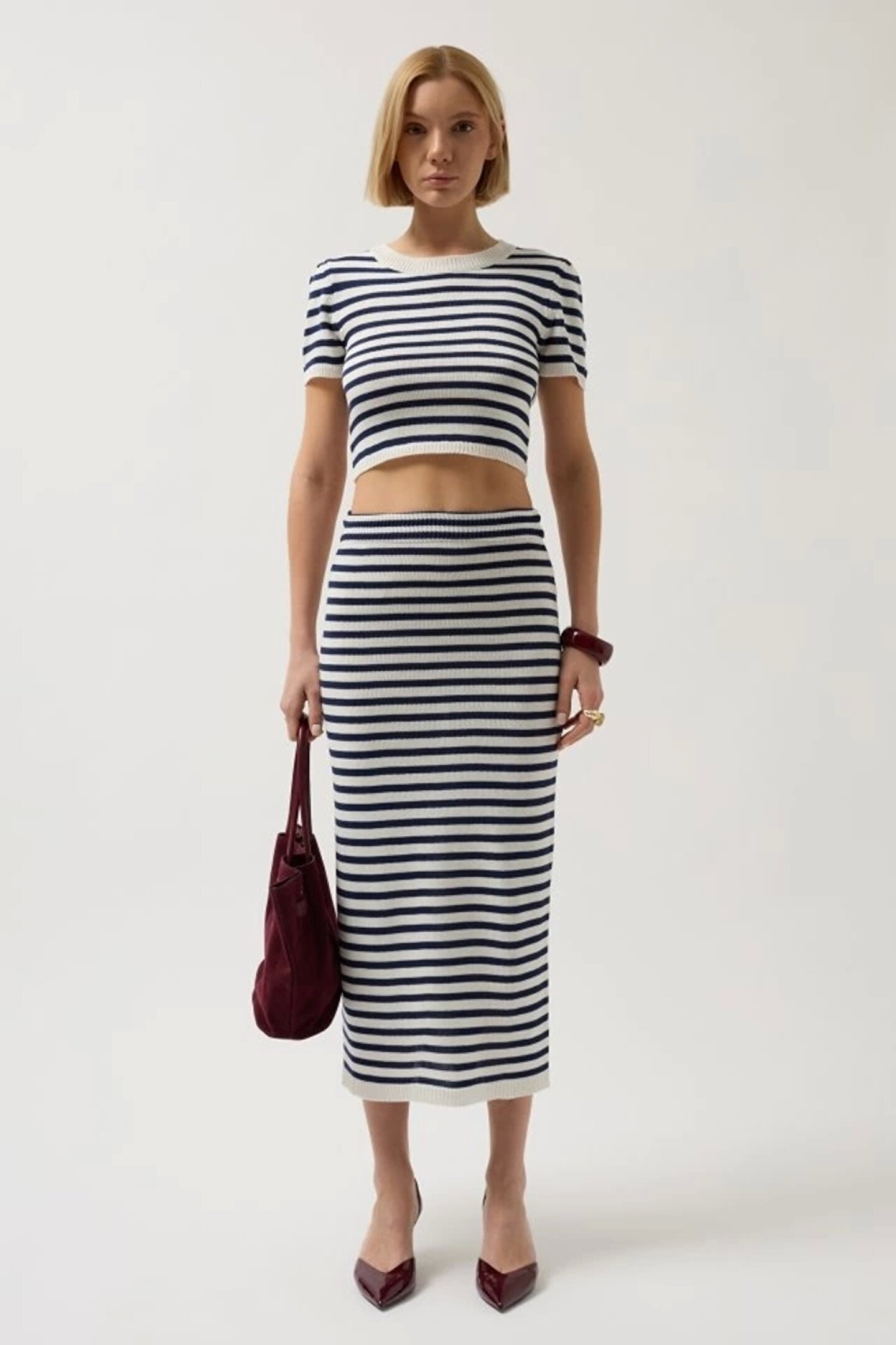 ESSE BUTİK Çizgili Bisiklet Yaka Crop