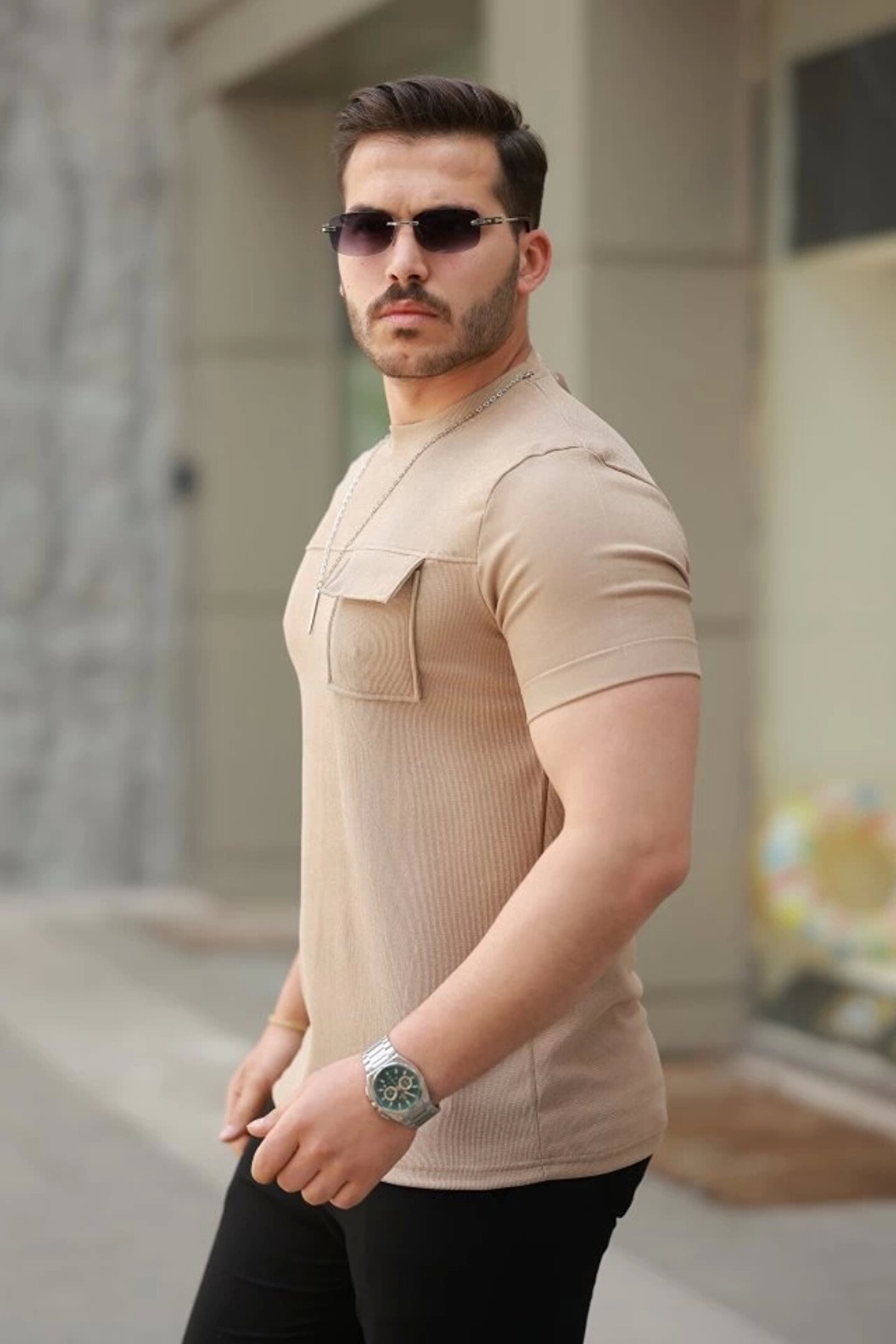 ESSE BUTİK Erkek Cepli Kolyeli Kısa Kollu örme Kumaş Tişört