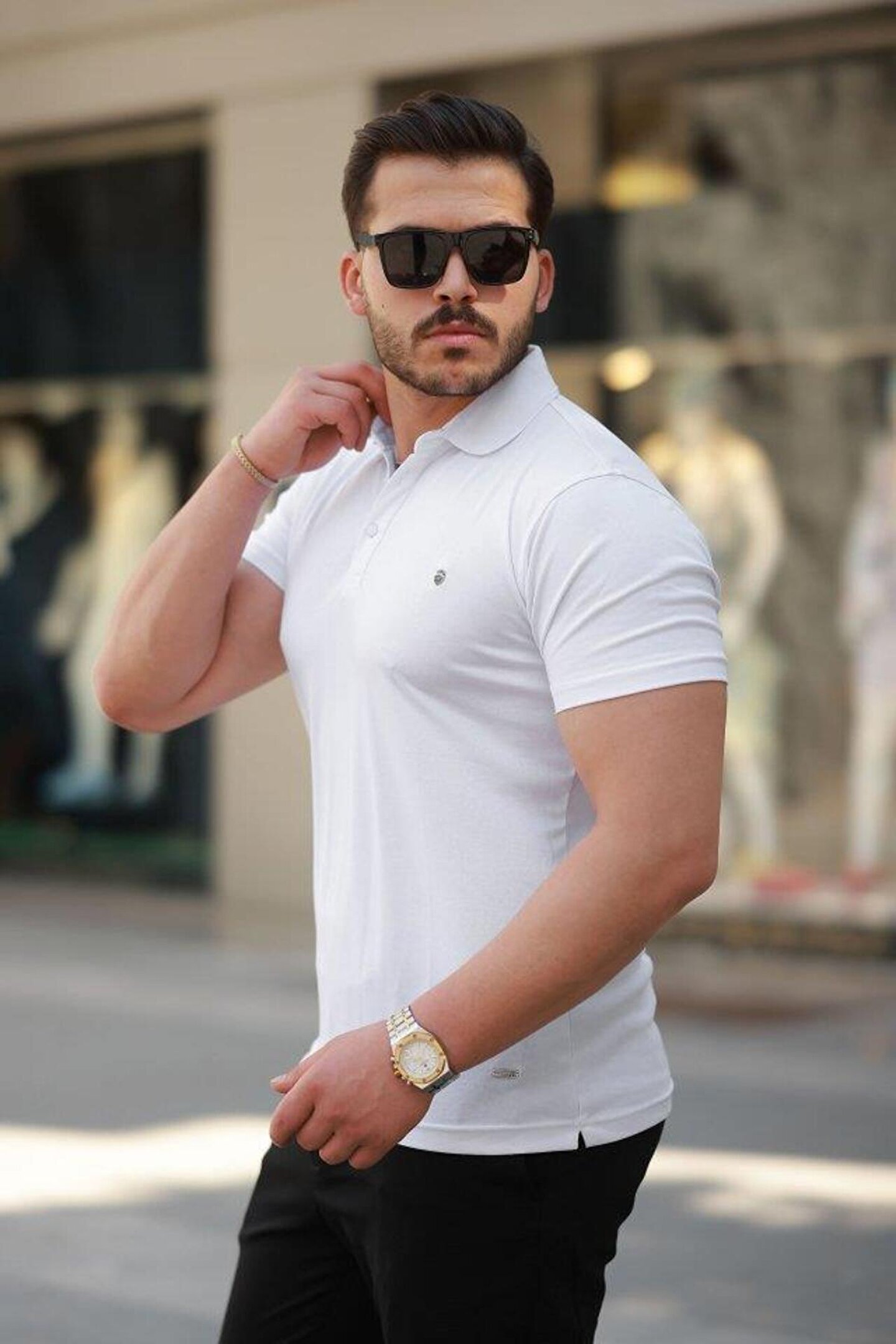 Erkek Yakalı Arma Detaylı Kısa Kollu Tişört