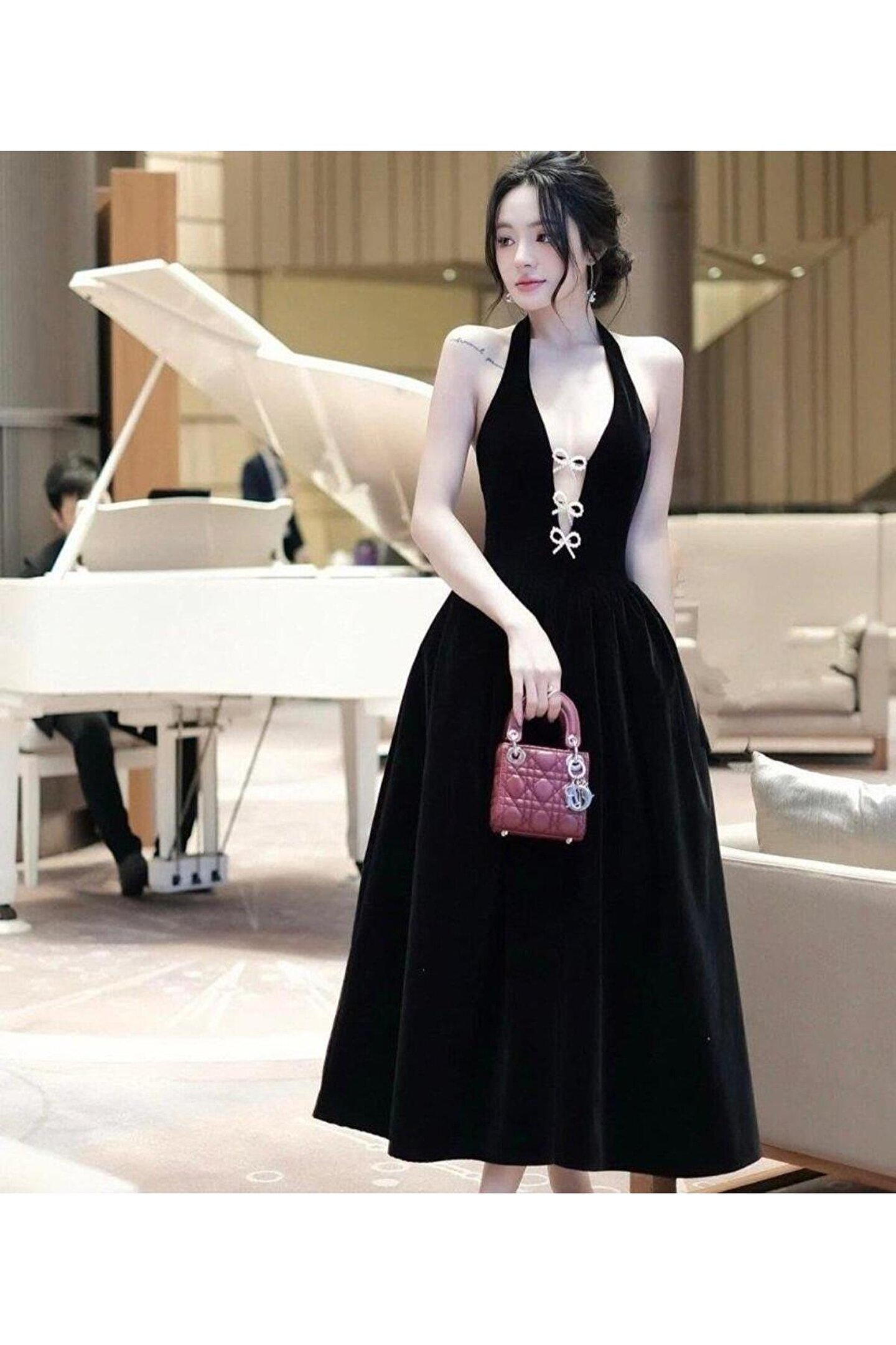 Pile Etek İnce Askılı Korse Formlu Poplin Kumaş Siyah Midi Elbise