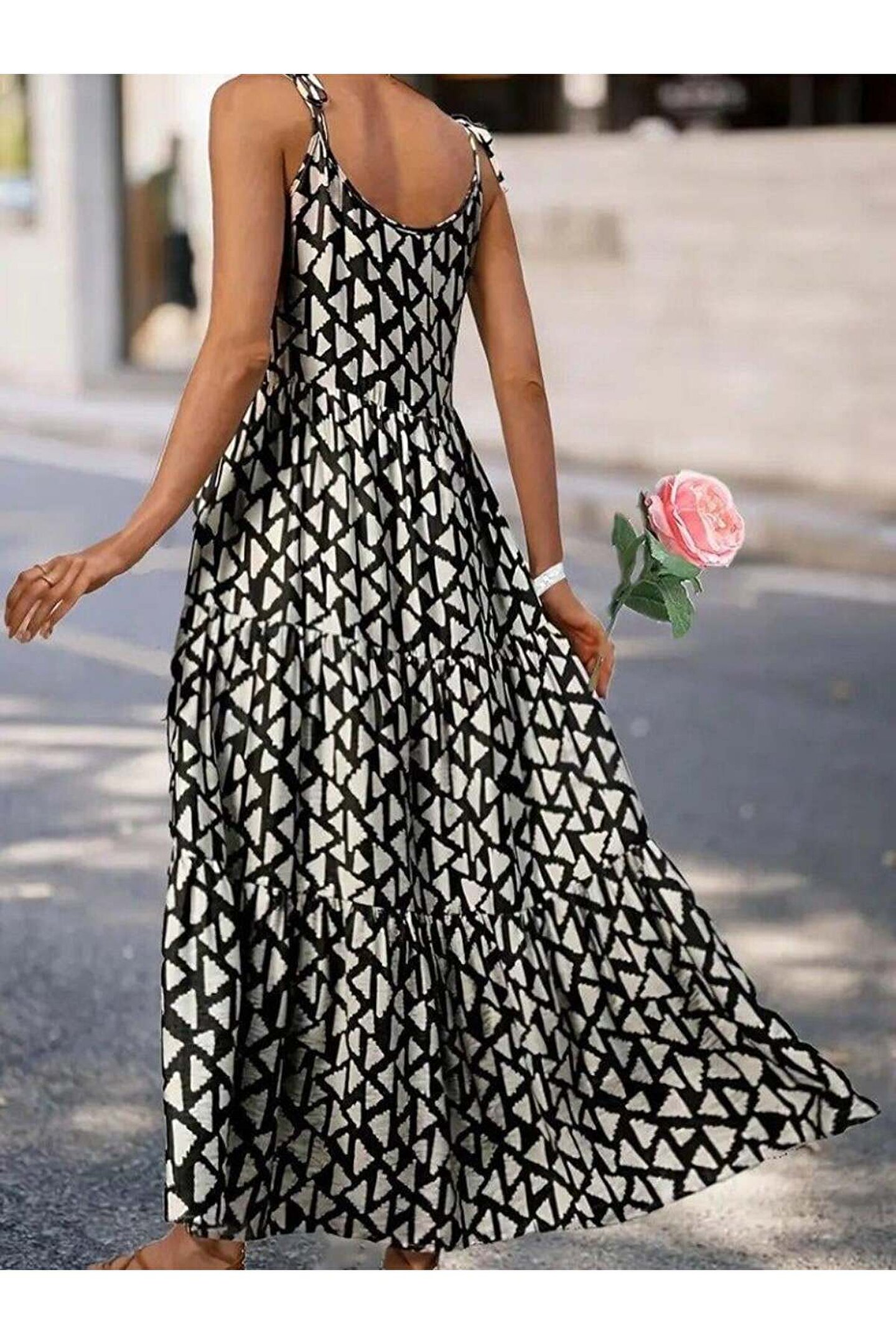 - Zarif tasarımıyla dikkat çeken askılı yuvarlak yaka fırfırlı desenli uzun elbise, yaz aylarının vazgeçilmez parçasıdır.; - Kapsız yapısı ile rahatlık sunarken, kemer detayına ihtiyaç duymadan şıklığınızı tamamlamanızı sağlar.; - Astarsız oluşu sayesinde hafif ve ferah bir kullanım imkanı tanırken, bürümcük dokusuyla göz alıcı bir görünüm kazandırır.; - Sürdürülebilir malzemelerden üretilmiş olup, çevre dostu tercihler yapmanızda size eşlik eder.; - Fashion Forward koleksiyonuna ait bu elbise, günlük kullanımda trendleri takip etmenizi kolaylaştırır.; - Ilık su ile yıkama önerisiyle bakımının pratik ve zahmetsiz olmasını sağlar; böylece zamandan tasarruf edersiniz.; - Ek özellik bulunmayan bu modelde sade güzellik ön planda tutulmuştur; her ortamda zarafetinizi korumanız için idealdir.; - Pamuk, polyester ve elastan karışımından oluşan materyali esneklik sunarak gün boyu konforlu hissetmenize olanak tanır.; - Casual koleksiyonun bir parçası olarak günlük giyimde rahatlıkla tercih edebileceğiniz bu elbise, stil sahibi görünümünüzü pekiştirir.; - İnce kalıbıyla vücut hatlarınıza uyum sağlayarak feminen siluetinizi ön plana çıkartır.; - Trend ortamlarda fark yaratmak isteyenler için mükemmel seçimdir; her anınıza uyum sağlayacak şekilde tasarlanmıştır.; - Askılı kol tipi sayesinde omuzlarınızda yük olmadan serinlik hissi yaşatırken, kare yaka detayı modern çizgilere sahiptir.; - Tekli paketiyle kolayca satın alınabilir ve gardrobunuza ekleyebilirsiniz; ekstra kutuya ihtiyaç duymadan pratik kullanım vaad eder.; - Belirtilmemiş kumaş tipine sahip olmasıyla farklı dokular arasında geçiş yapabilme esnekliği sunarken, uzun boy kesimiyle zarif duruşunu korur.
