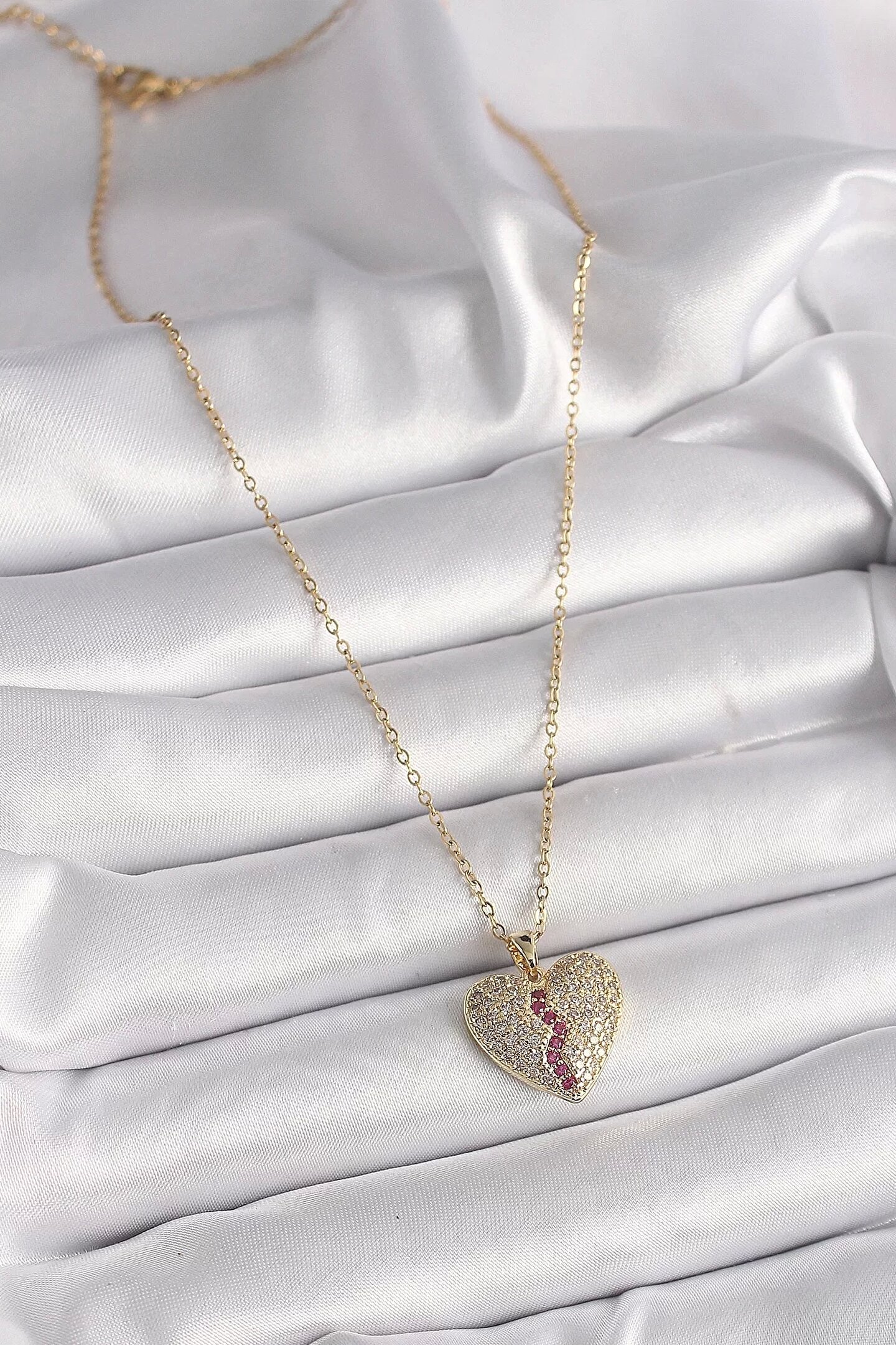 etexy 316L Çelik Gold Renk Zincir Zirkon Taşlı Kalp Model Kadın Kolye
