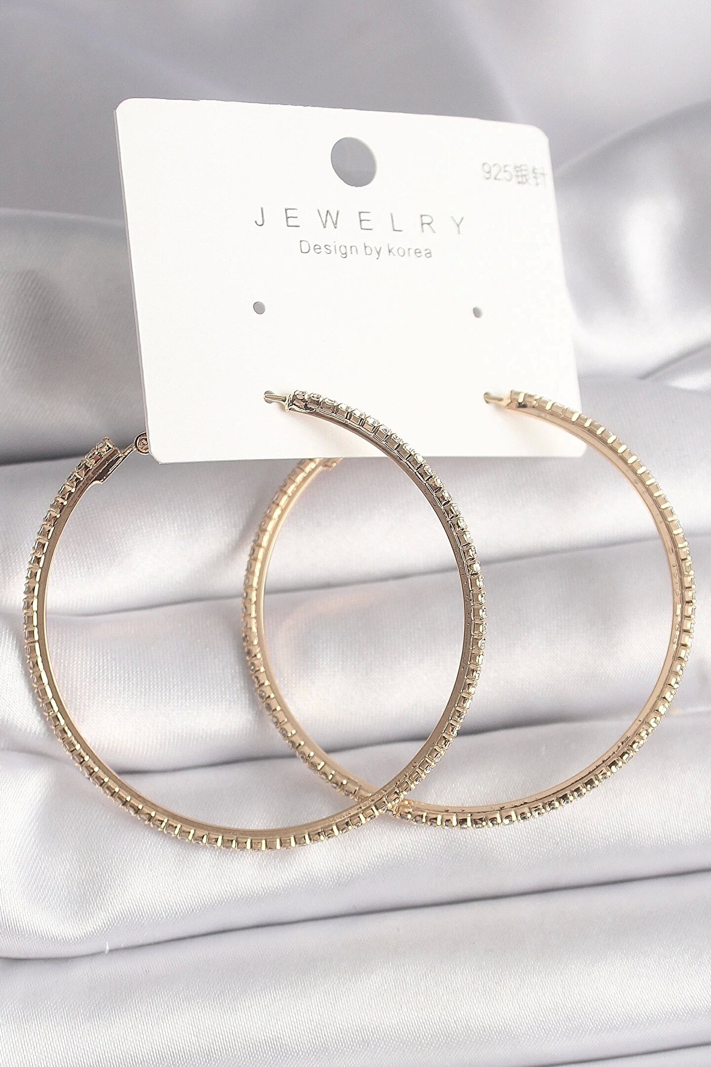 Pirinç Gold Renk Zirkon Taşlı Halka Model Kadın Küpe