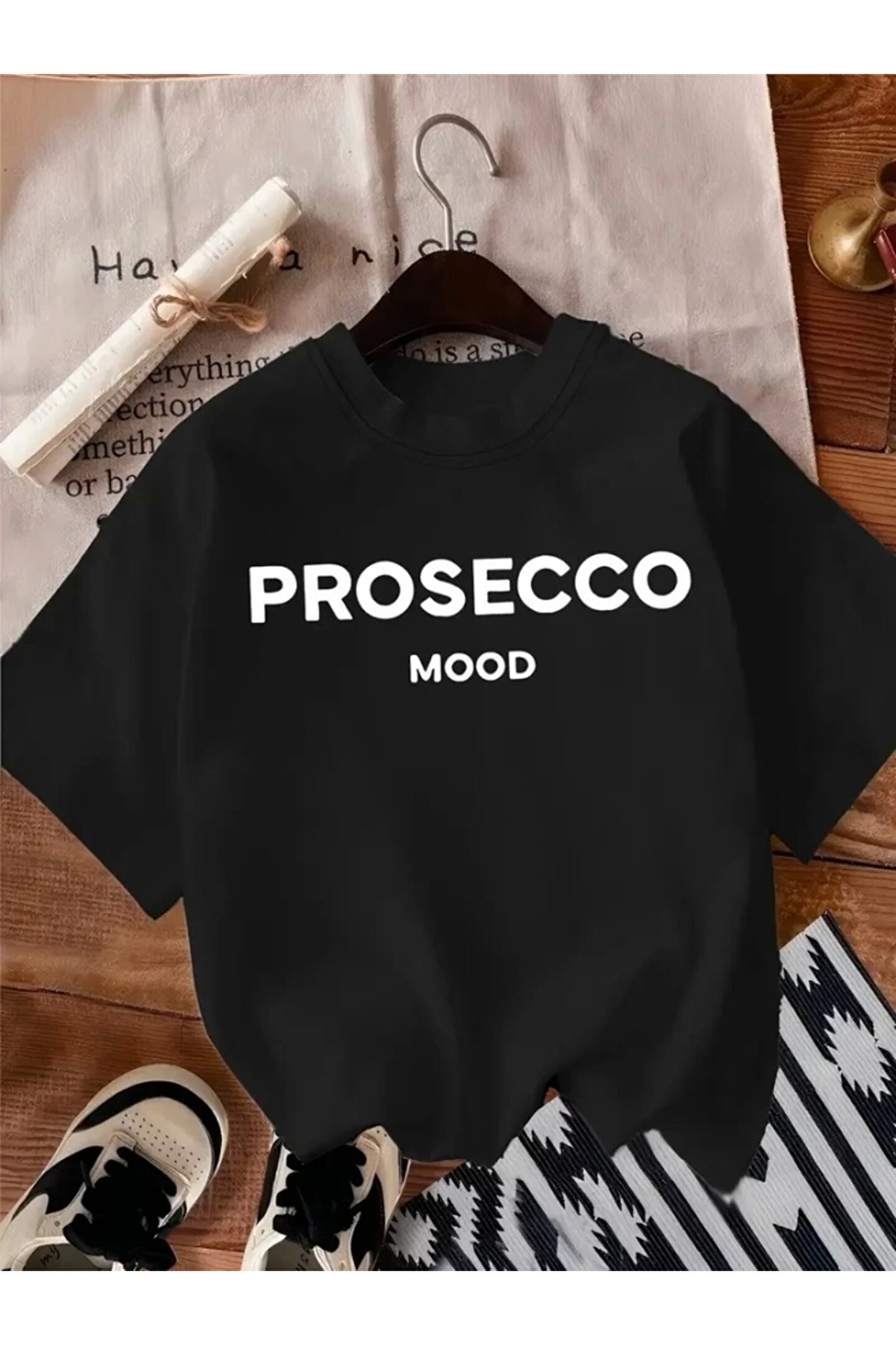 Baskılı Oversize Bisiklet Yaka T-shirt - Siyah