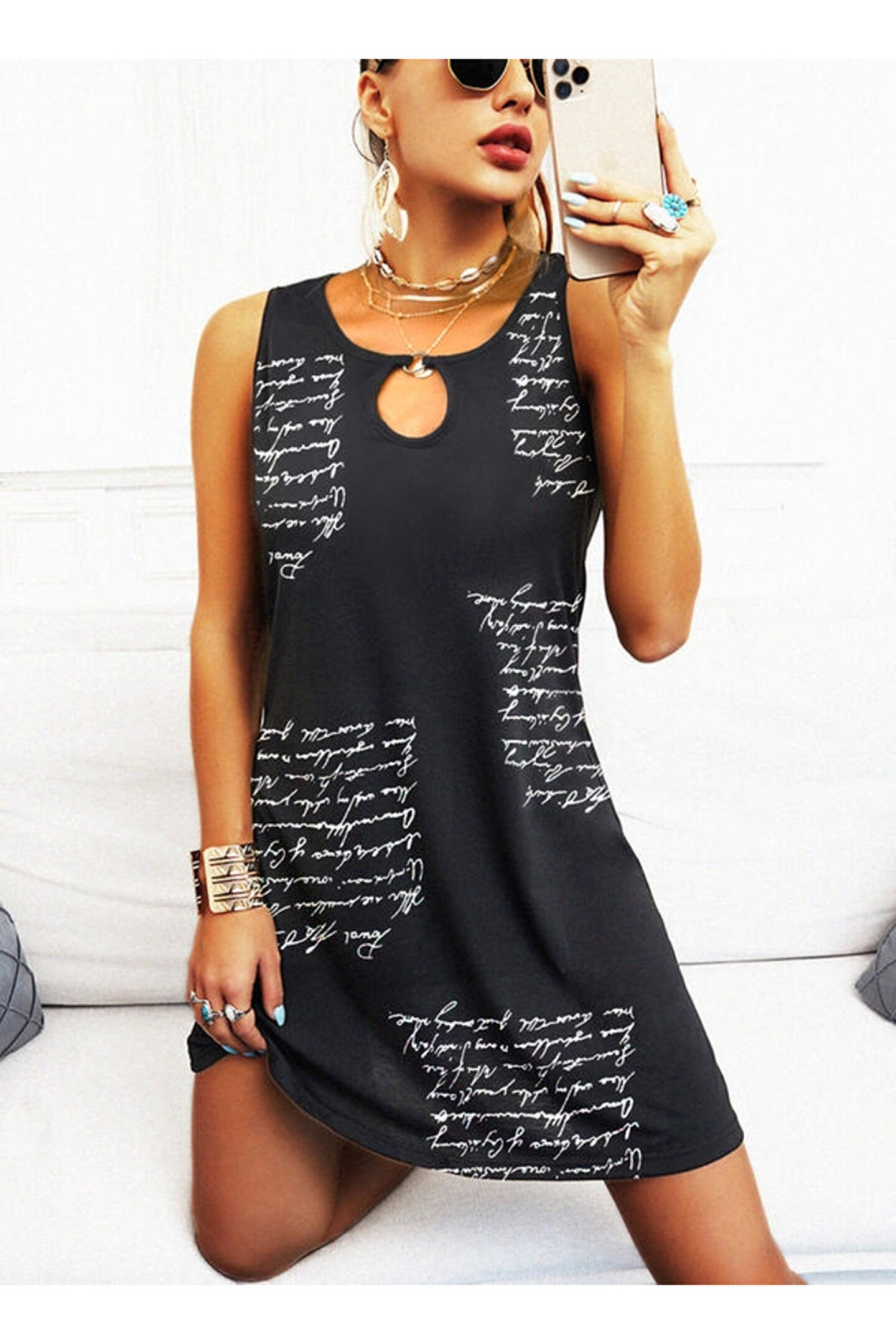 Kadın Kolsuz Halka Detay Mektup Desenli Mikro Elbise