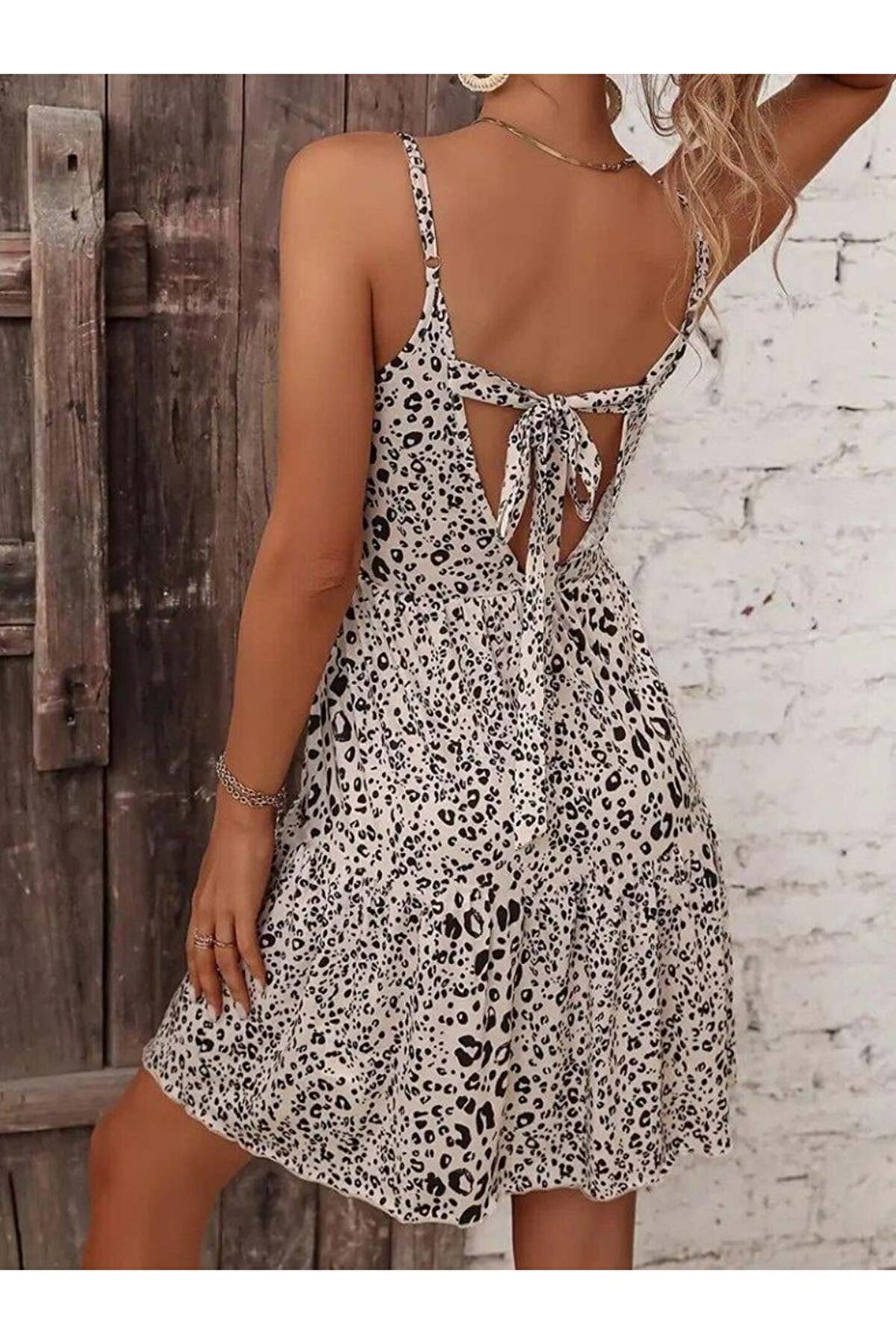Kadın Ip Askılı Sırttan Bağlamalı Fırfırlı Süprem Elbise