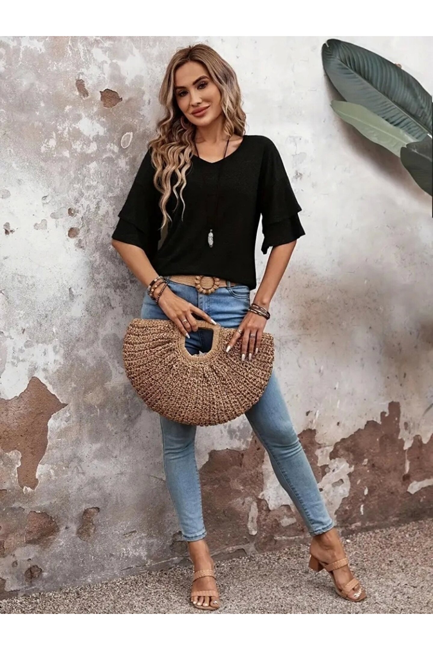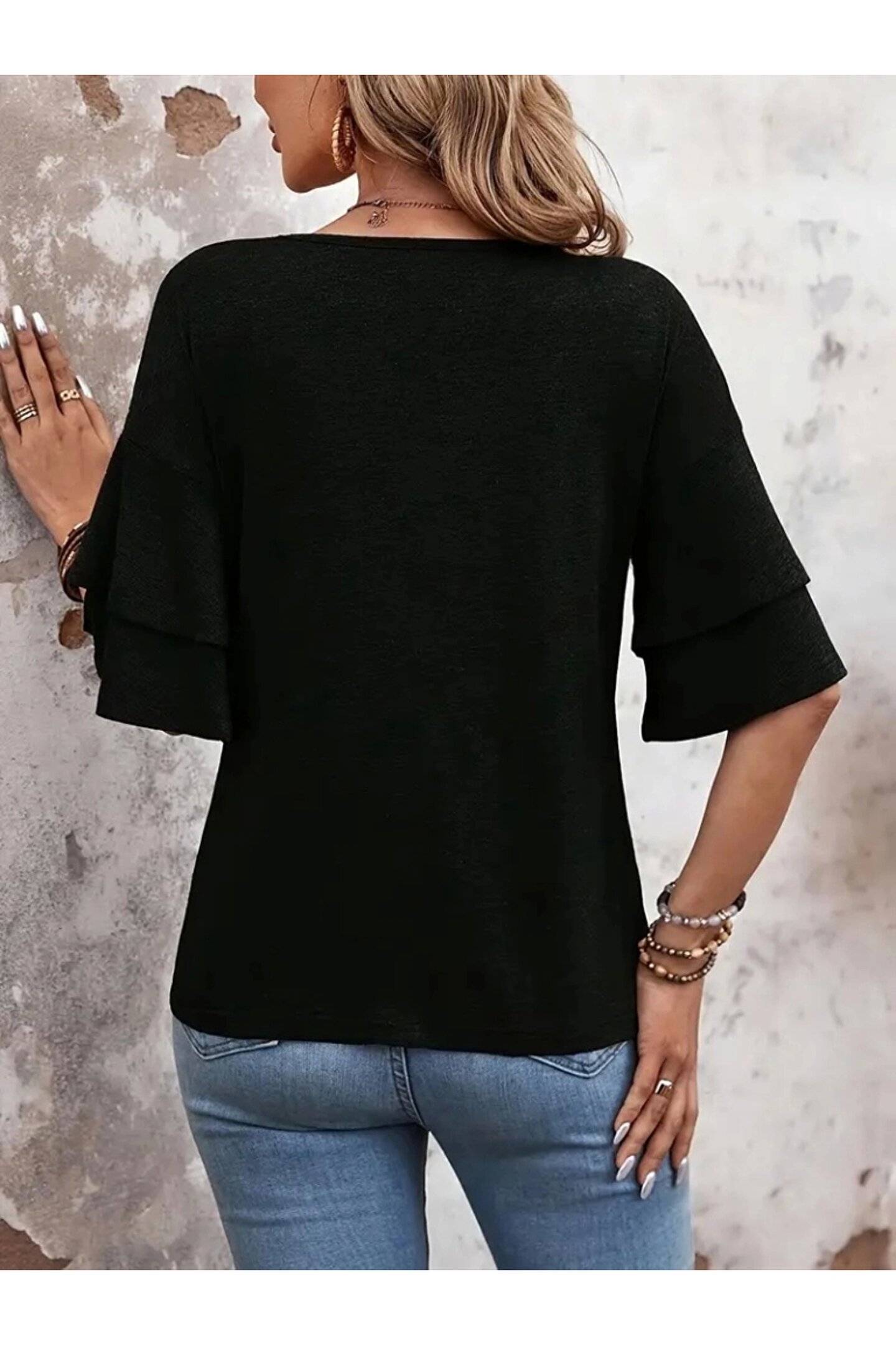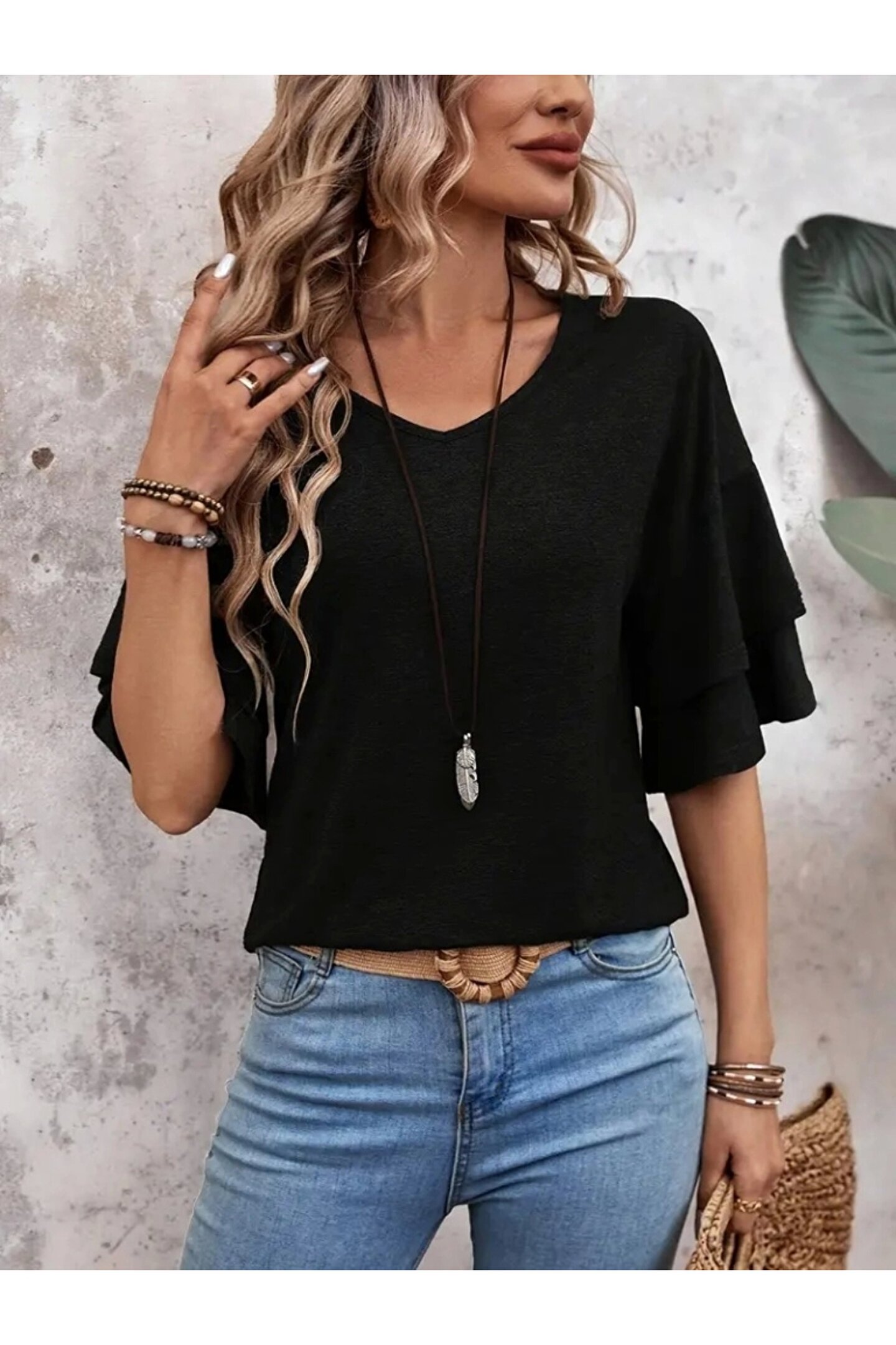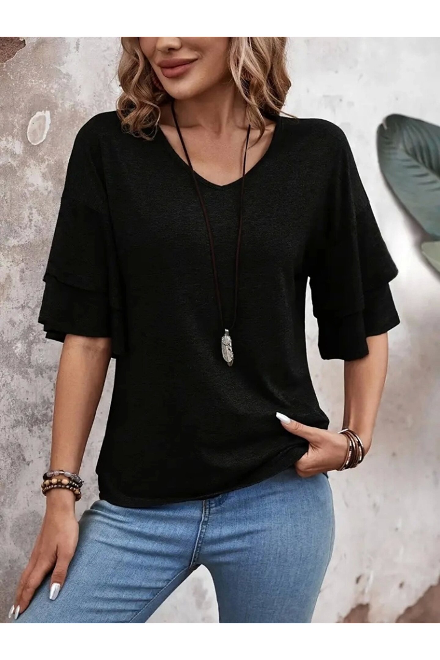 ETİLER COLLECTION Kadın Kısa Kollu V Yakalı Viskon Bluz